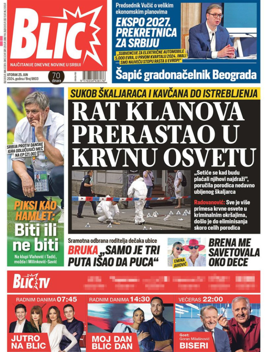 Naslovne strane dnevnih novina: Prelistavanje štampe za 25. jun 2024. godine