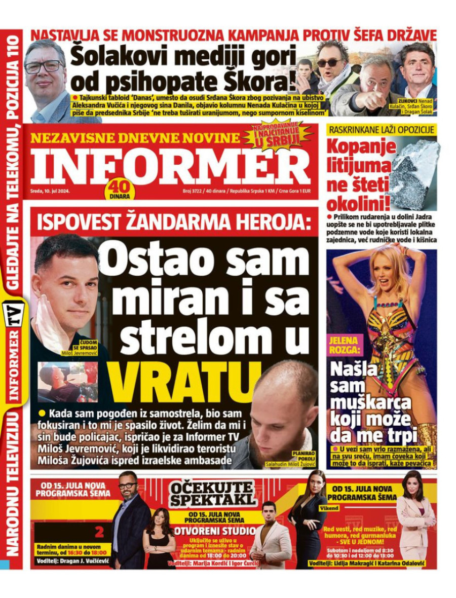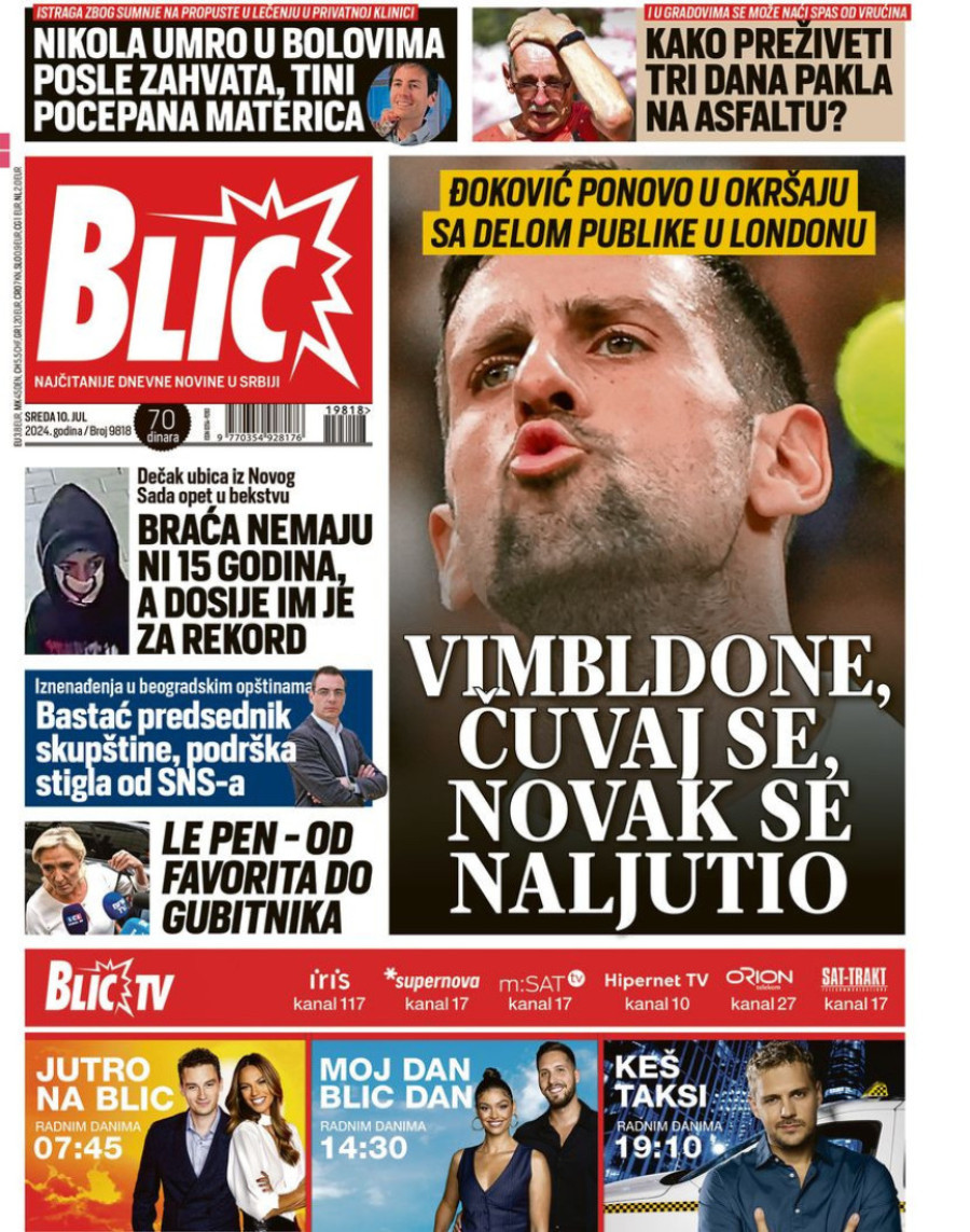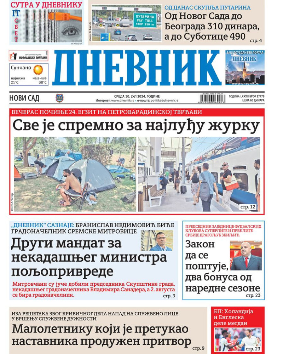 Naslovne strane dnevnih novina: Prelistavanje štampe za 10. jul 2024. godine