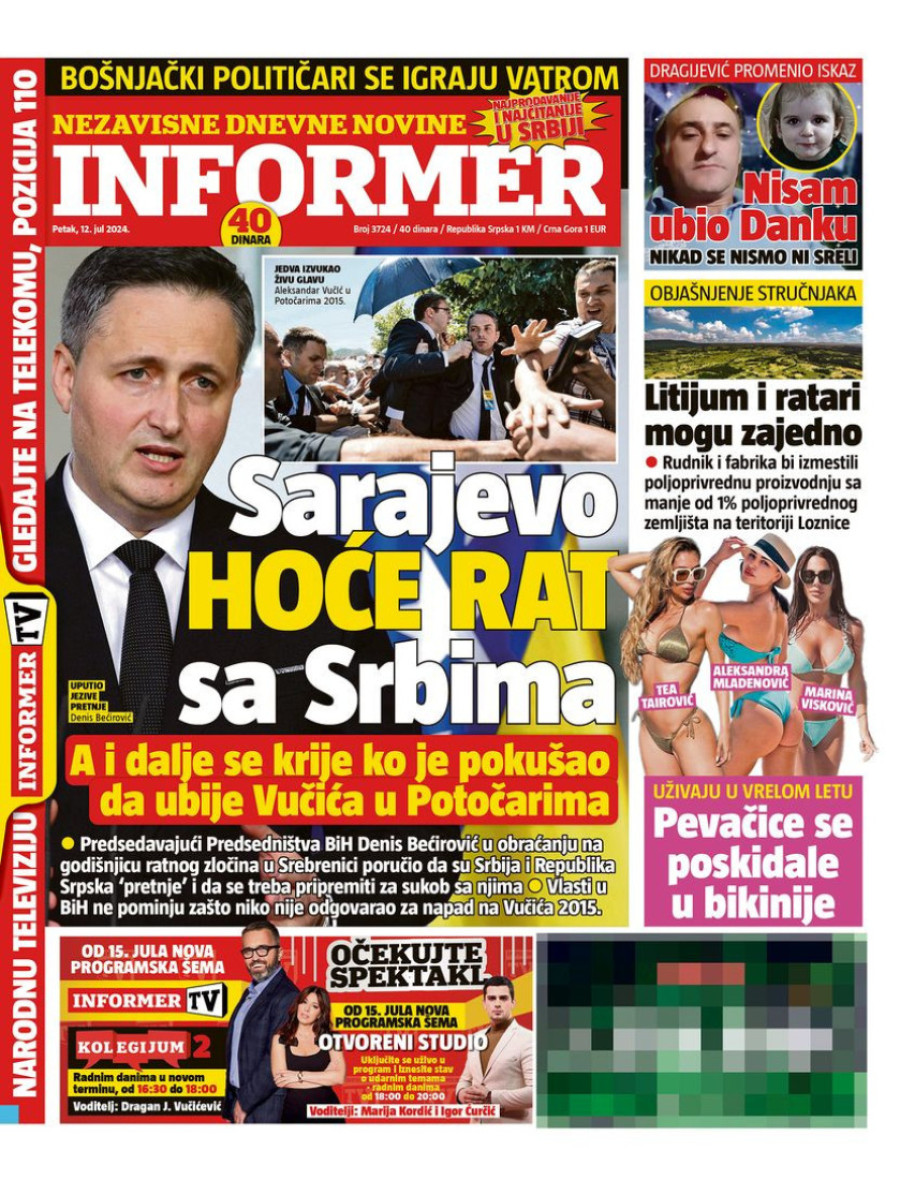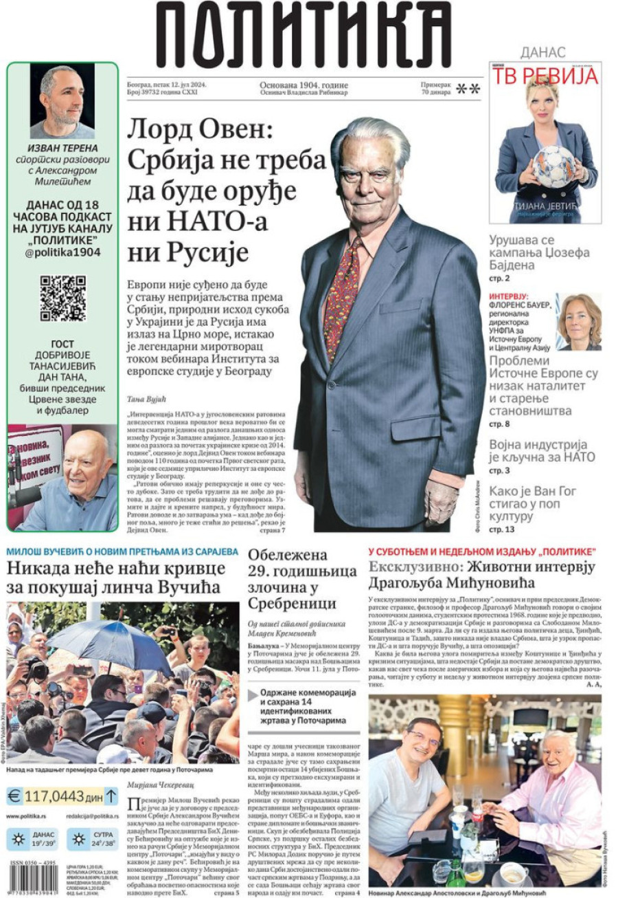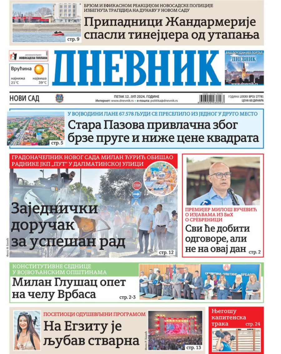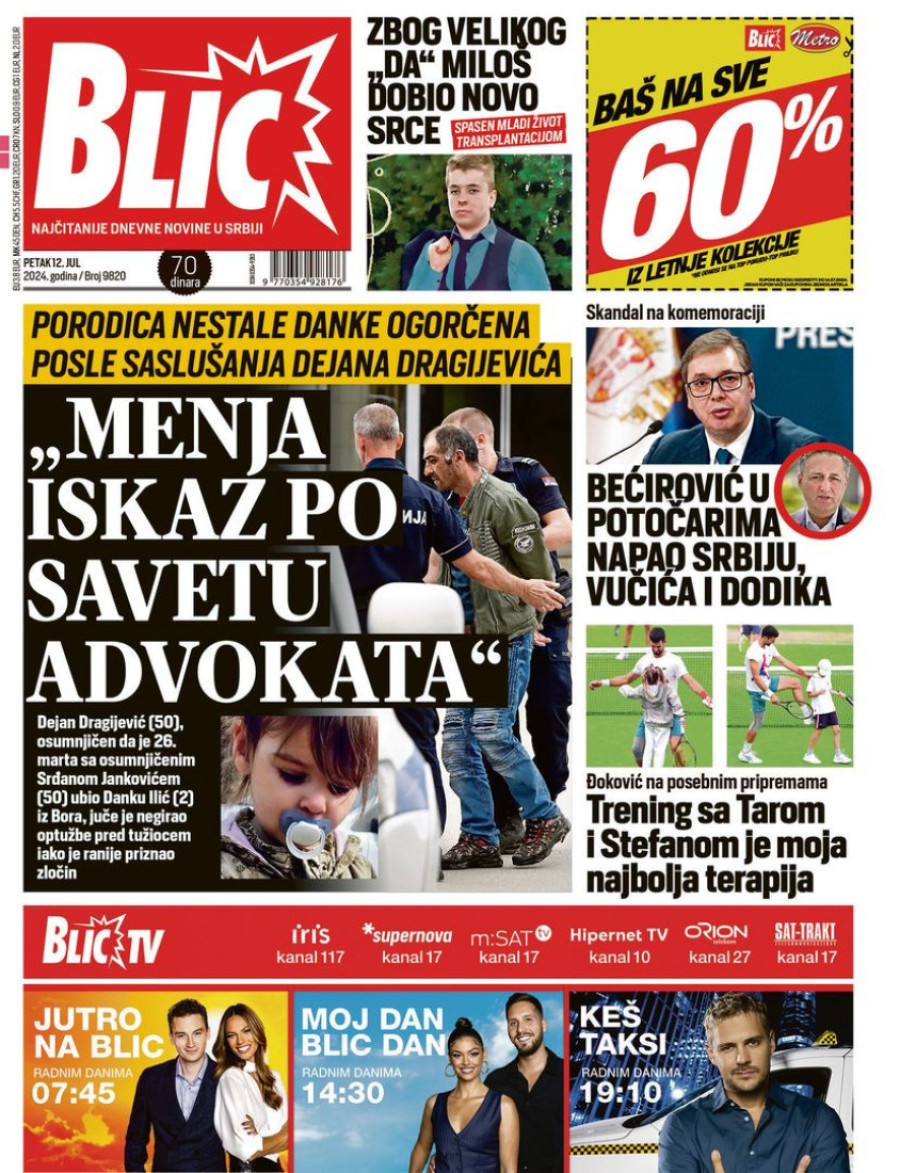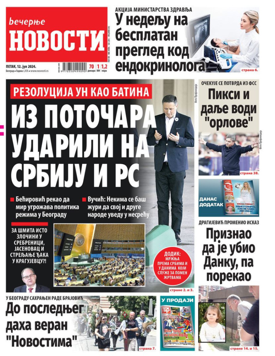 Naslovne strane dnevnih novina: Prelistavanje štampe za 12. jul 2024. godine