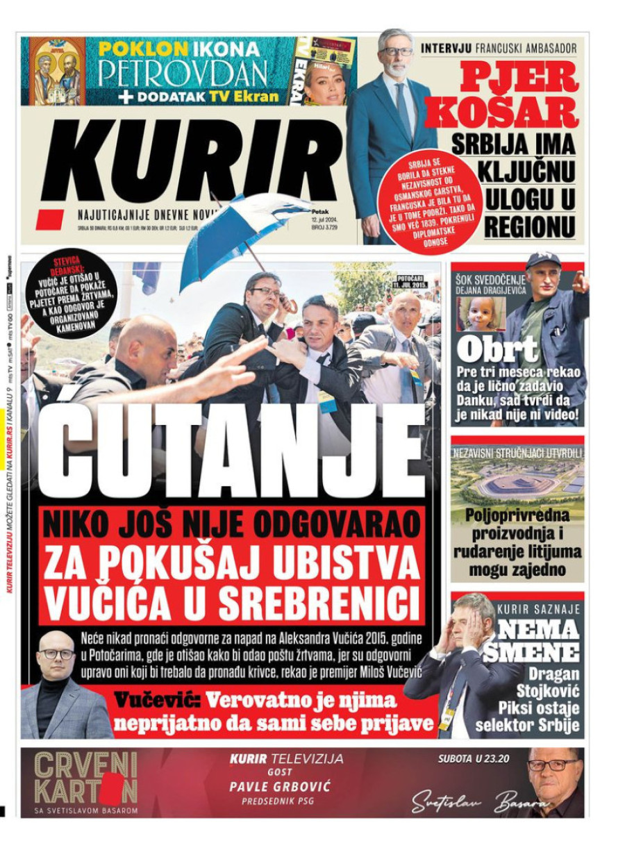 Dnevne novine u Srbiji za petak 12. jul 2024. godine, na naslovnim stranama najavljuju brojne aktuelne društveno-političke teme.