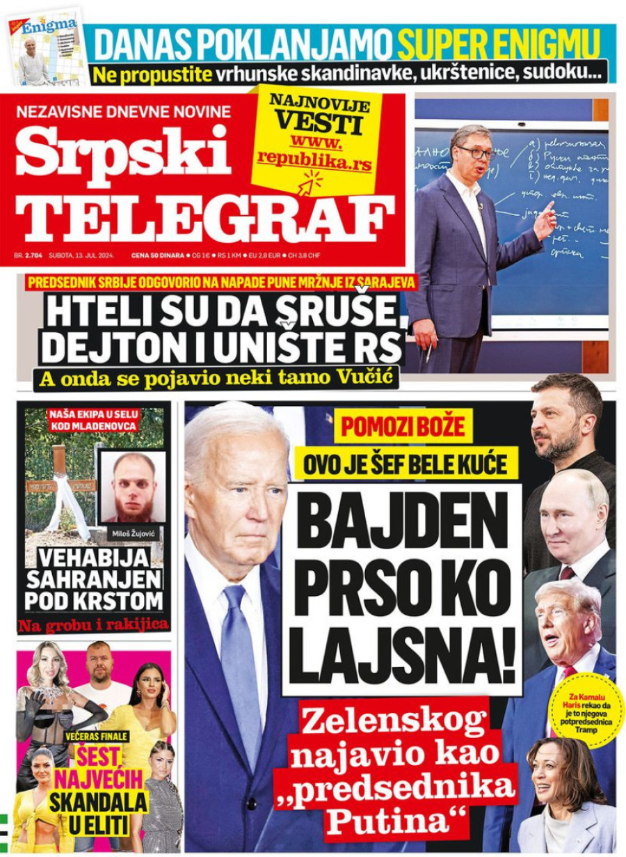 Naslovne strane dnevnih novina: Prelistavanje štampe za 13. jul 2024. godine