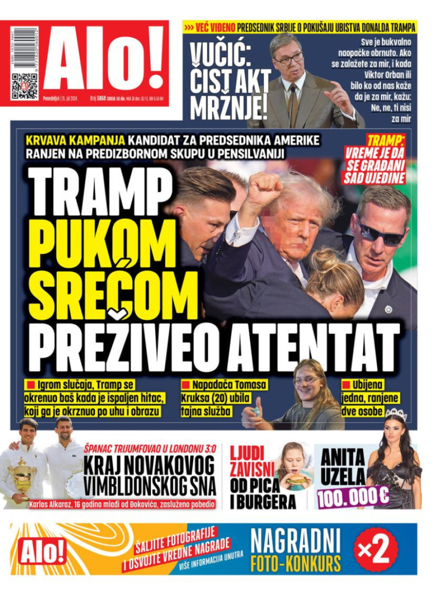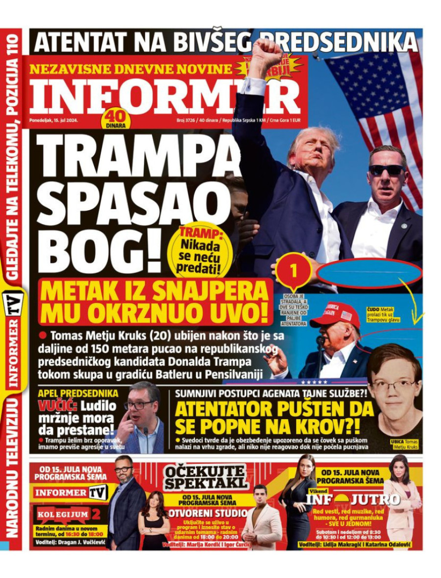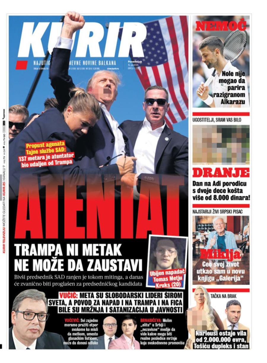 Naslovne strane dnevnih novina: Prelistavanje štampe za 15. jul 2024. godine