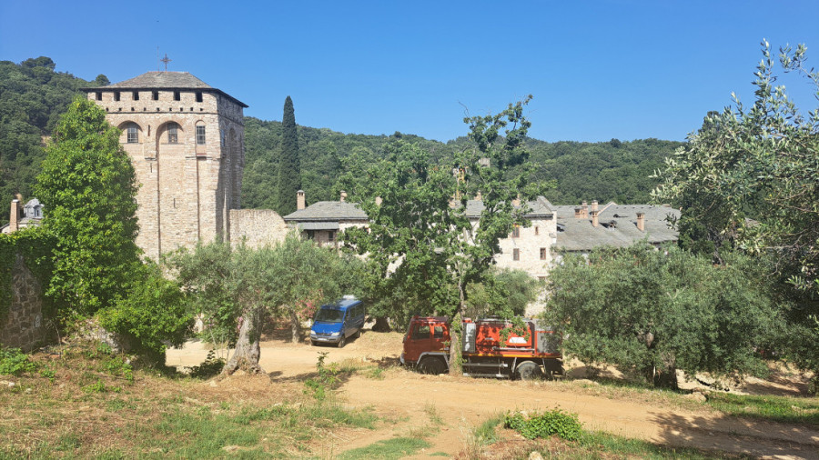 Na usluzi Hilandaru je i sanitetsko vozilo, kao i jedan vatrogasni kamion koji je stalno pored manastirskog kompleksa. Najrazorniji požar na Hilandaru izbio je u noći između 3. i 4. marta 2004. godine, kada je uništeno i teško oštećeno 5.897 metara kvadratnih ili skoro 55 odsto korisne površine i manastirskih zdanja.