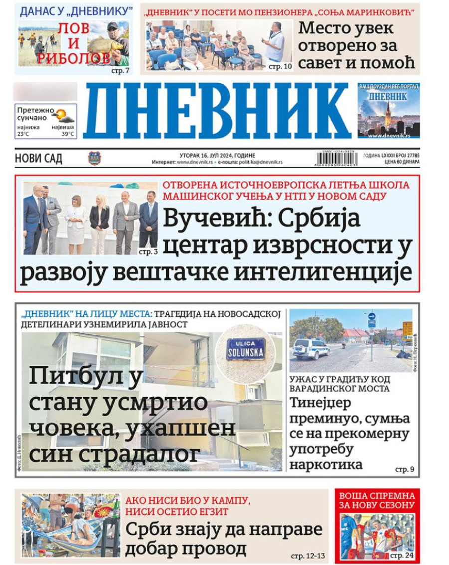 Dnevne novine u Srbiji za utorak 16. jul 2024. godine, na naslovnim stranama najavljuju brojne aktuelne društveno-političke teme.