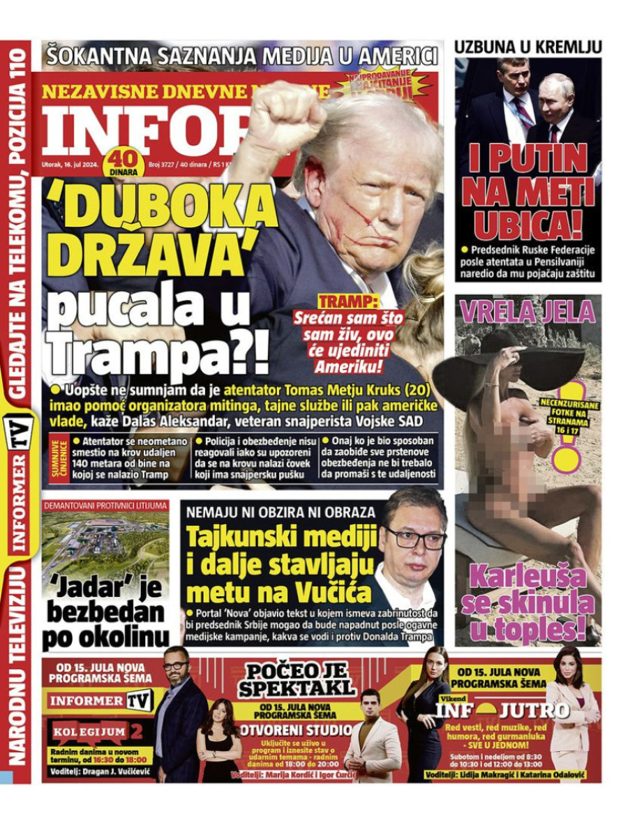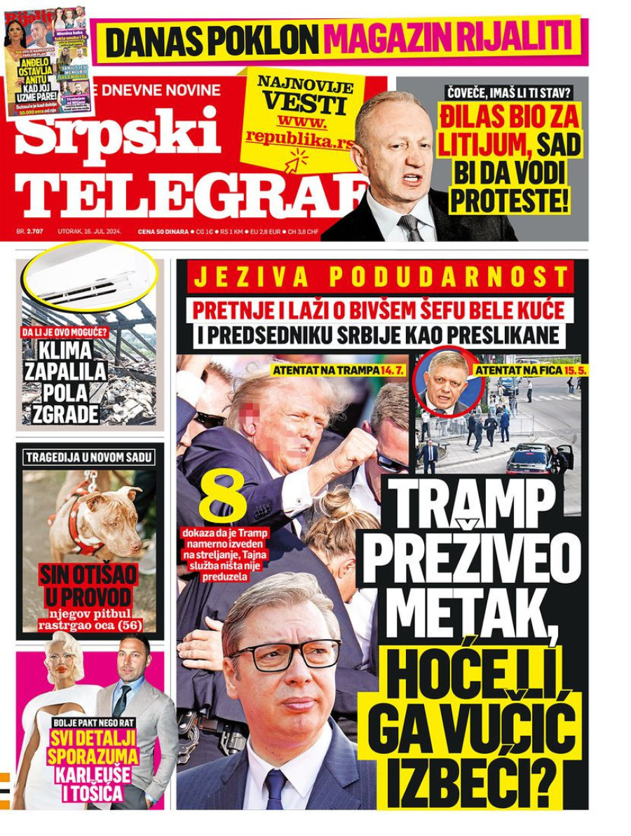 Naslovne strane dnevnih novina: Prelistavanje štampe za 16. jul 2024. godine