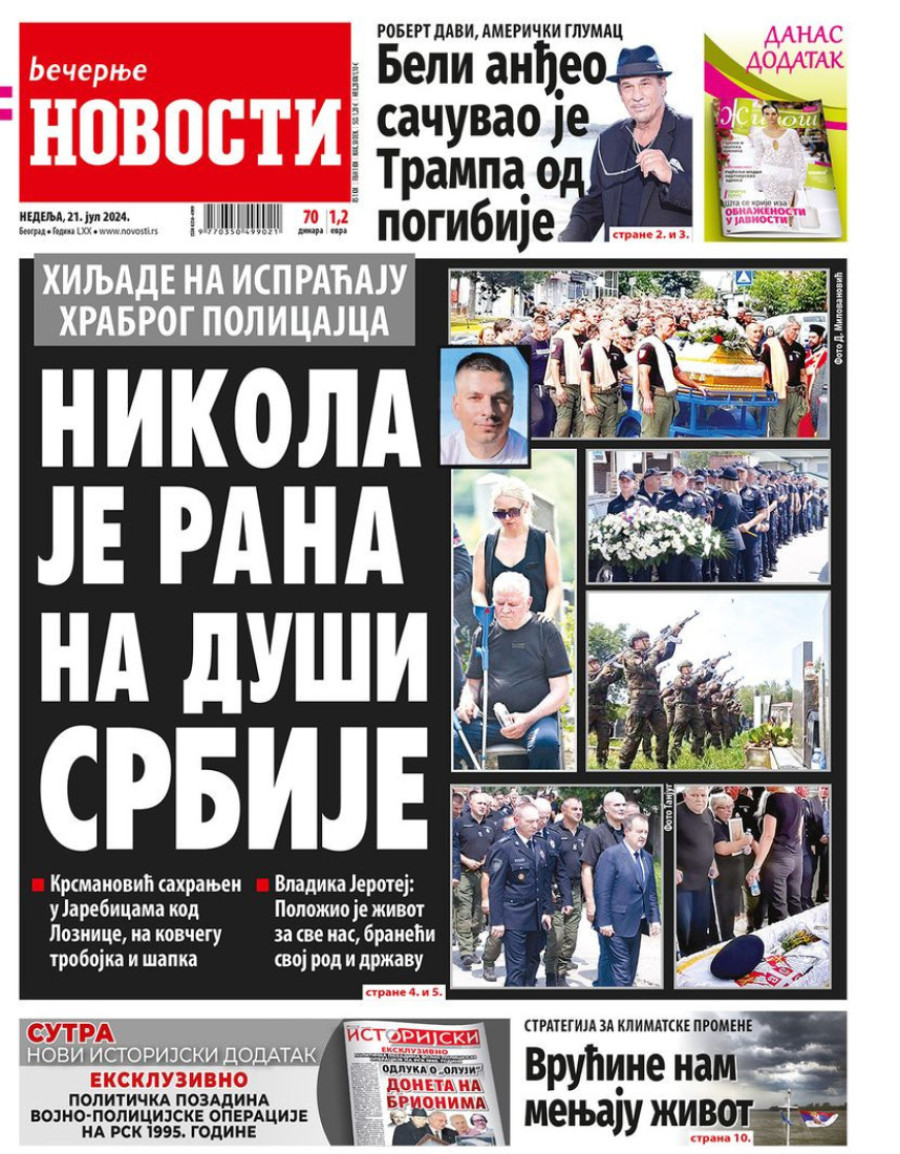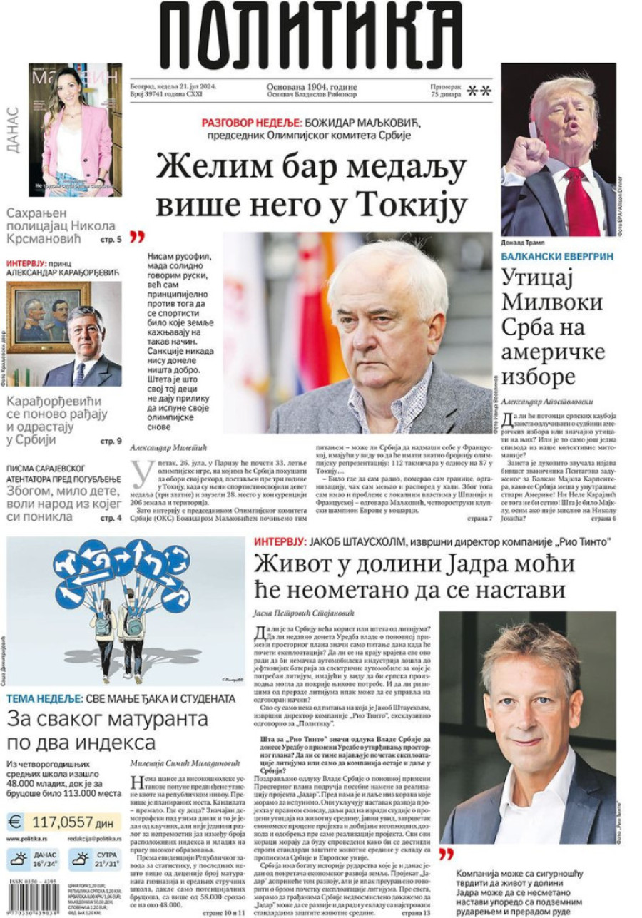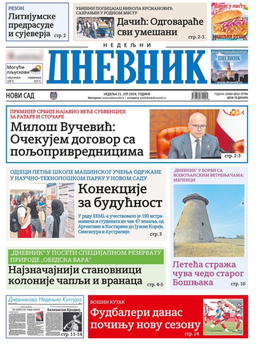 Dnevne novine u Srbiji za nedelju 21. jul 2024. godine, na naslovnim stranama najavljuju brojne aktuelne društveno-političke teme.