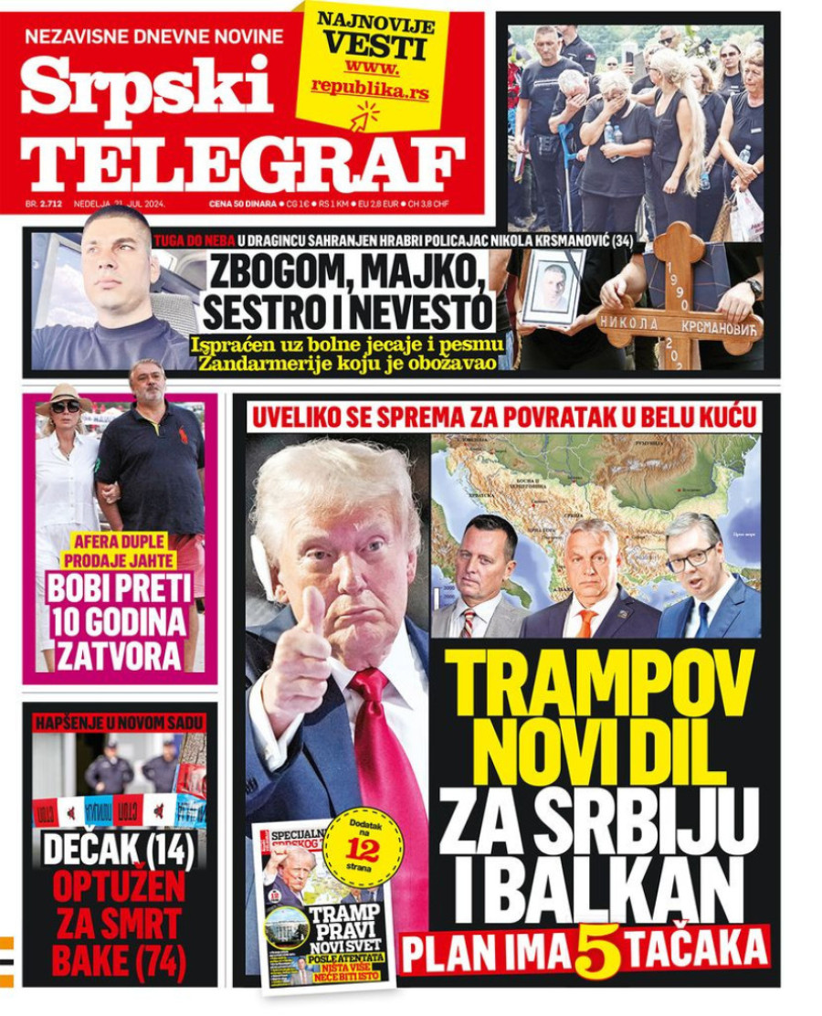 Naslovne strane dnevnih novina: Prelistavanje štampe za 21. jul 2024. godine