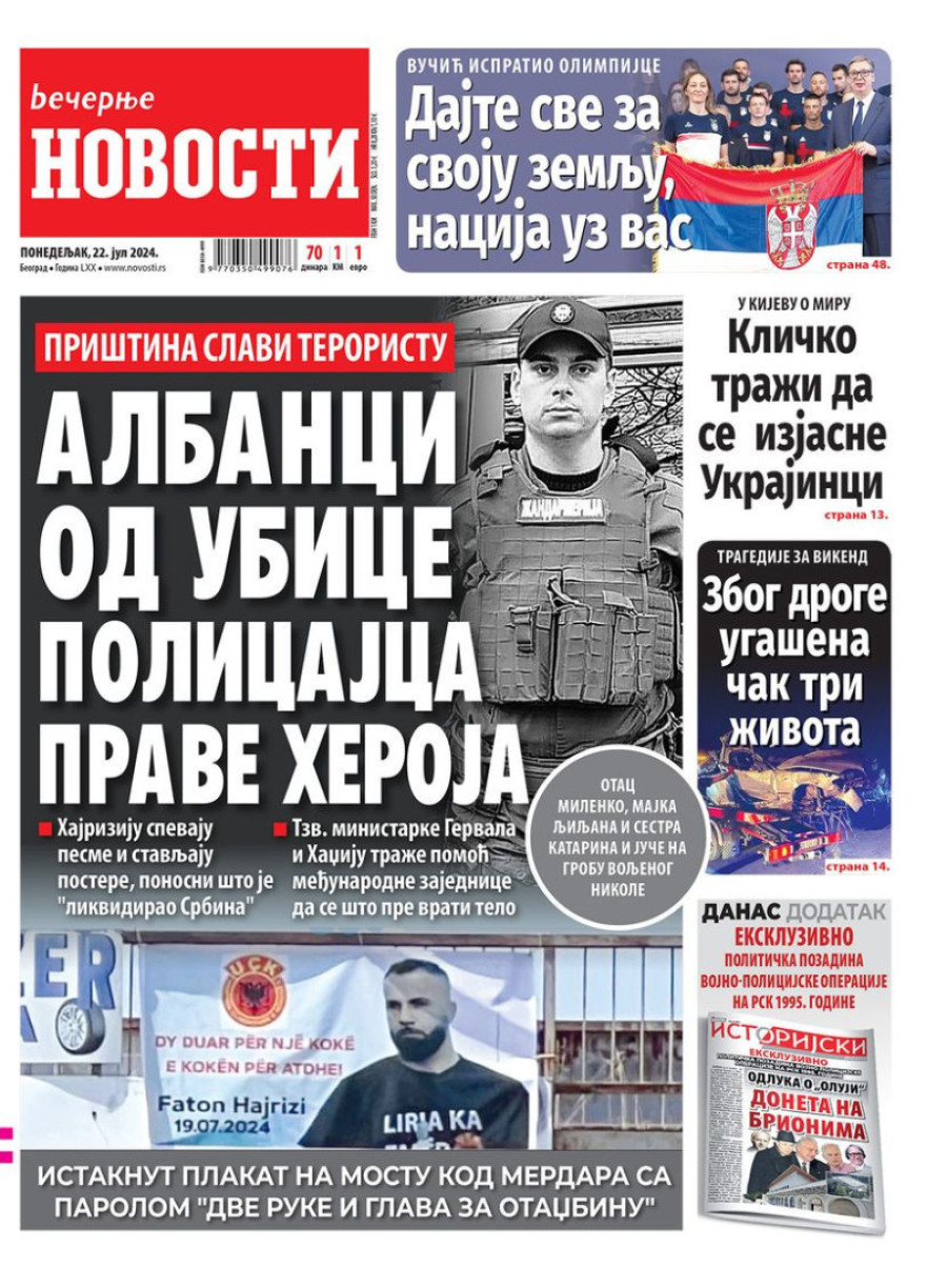 Naslovne strane dnevnih novina: Prelistavanje štampe za 22. jul 2024. godine