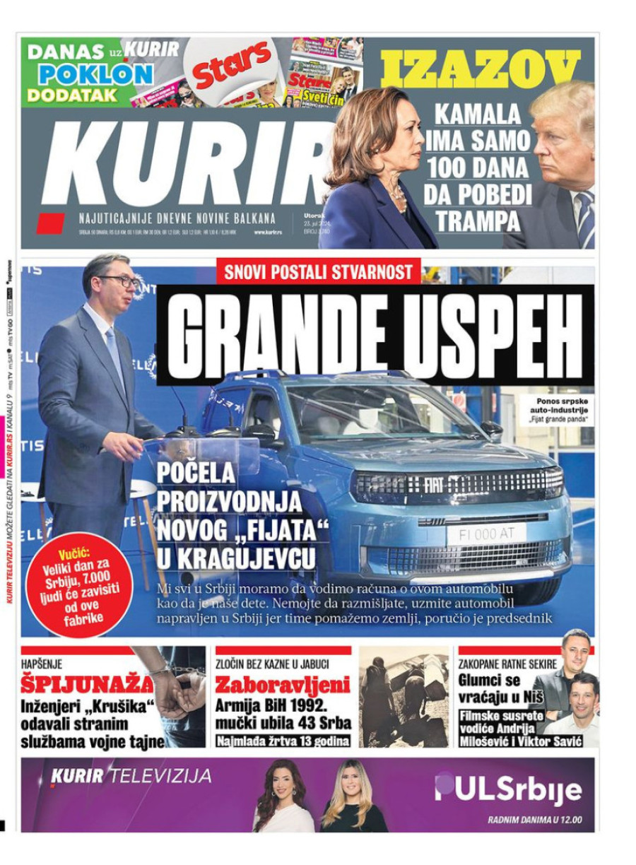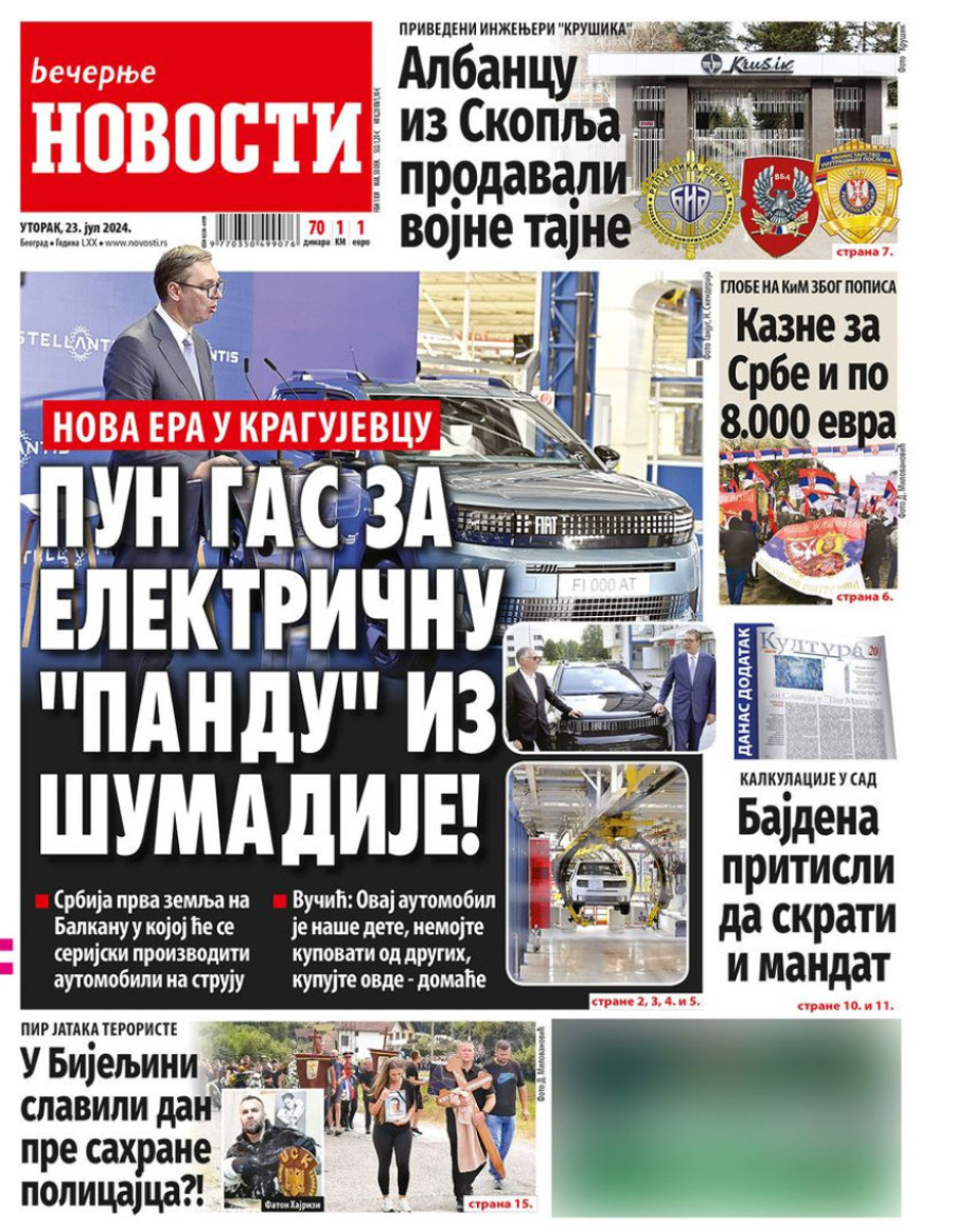 Dnevne novine u Srbiji za utorak 23. jul 2024. godine, na naslovnim stranama najavljuju brojne aktuelne društveno-političke teme.