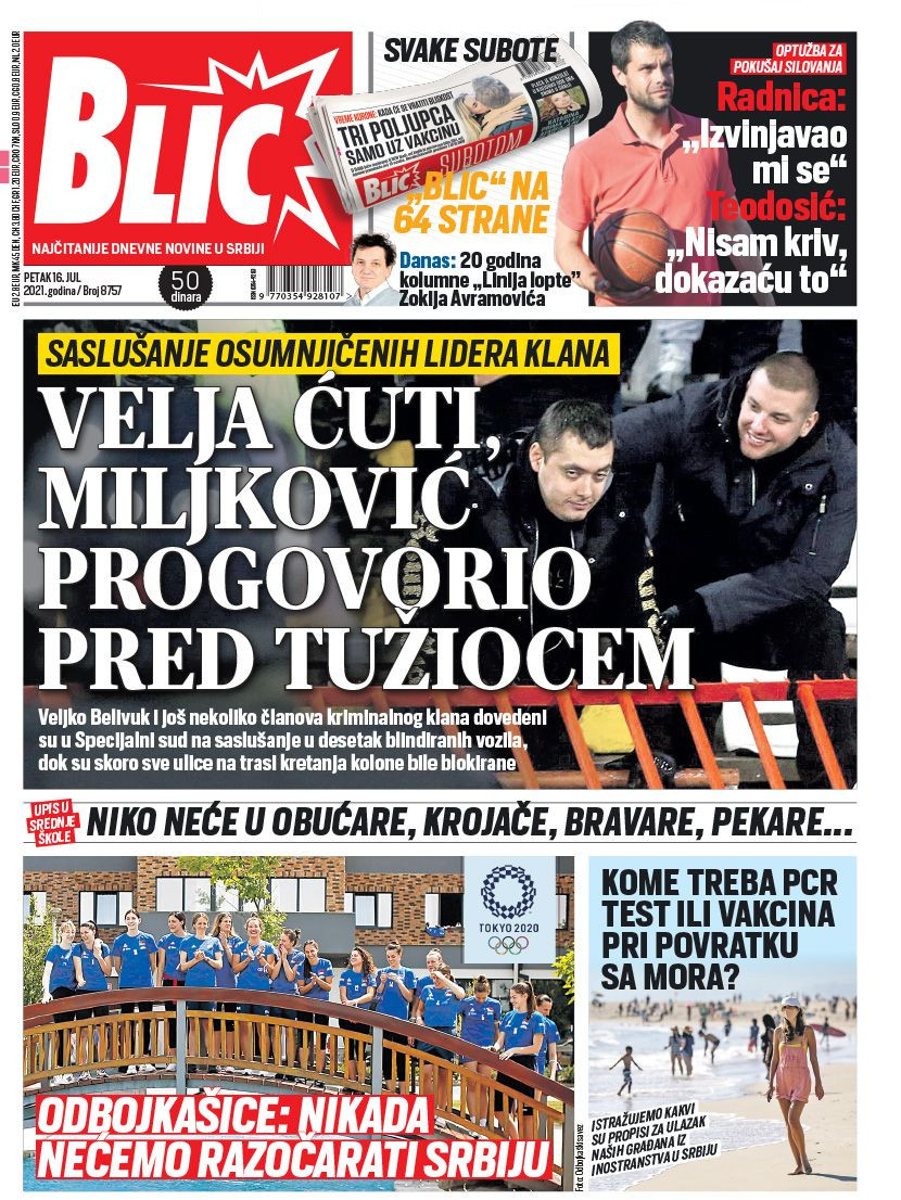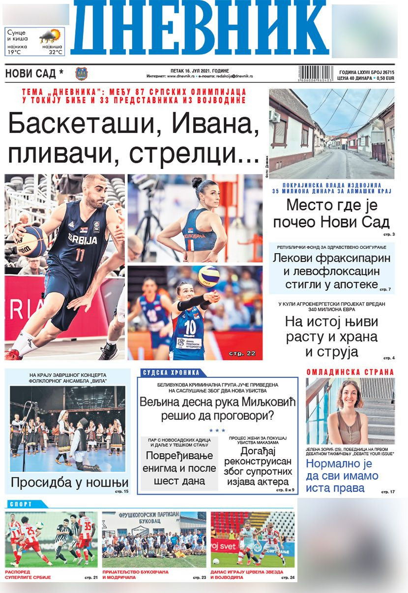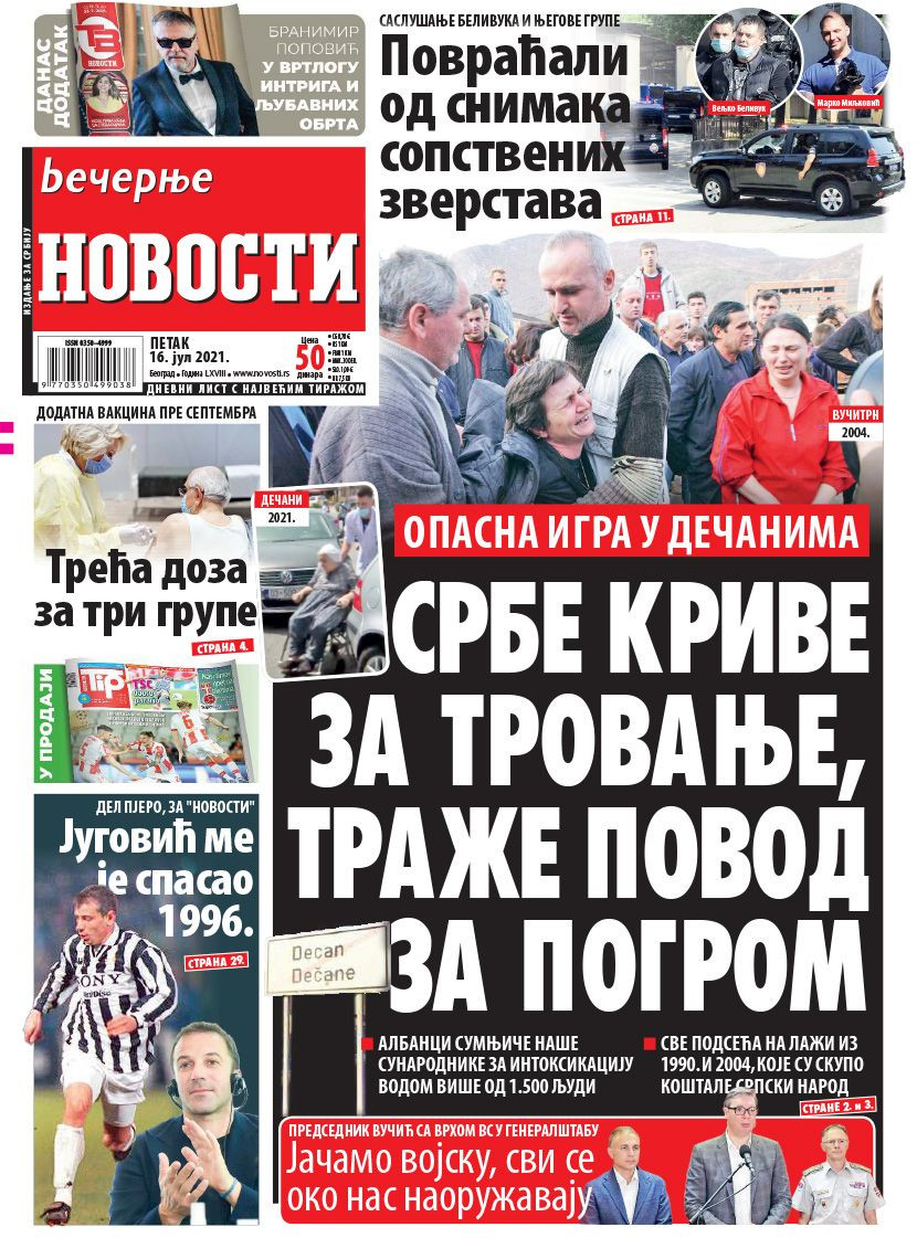 Dnevne novine u Srbiji za petak, 16. jul 2021. godine, na naslovnim stranama najavljuju brojne aktuelne društveno-političke teme i donose ekskluzivne priče.