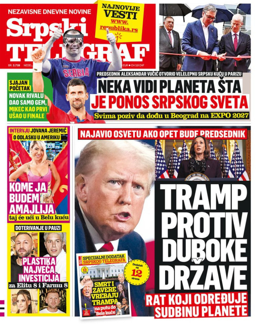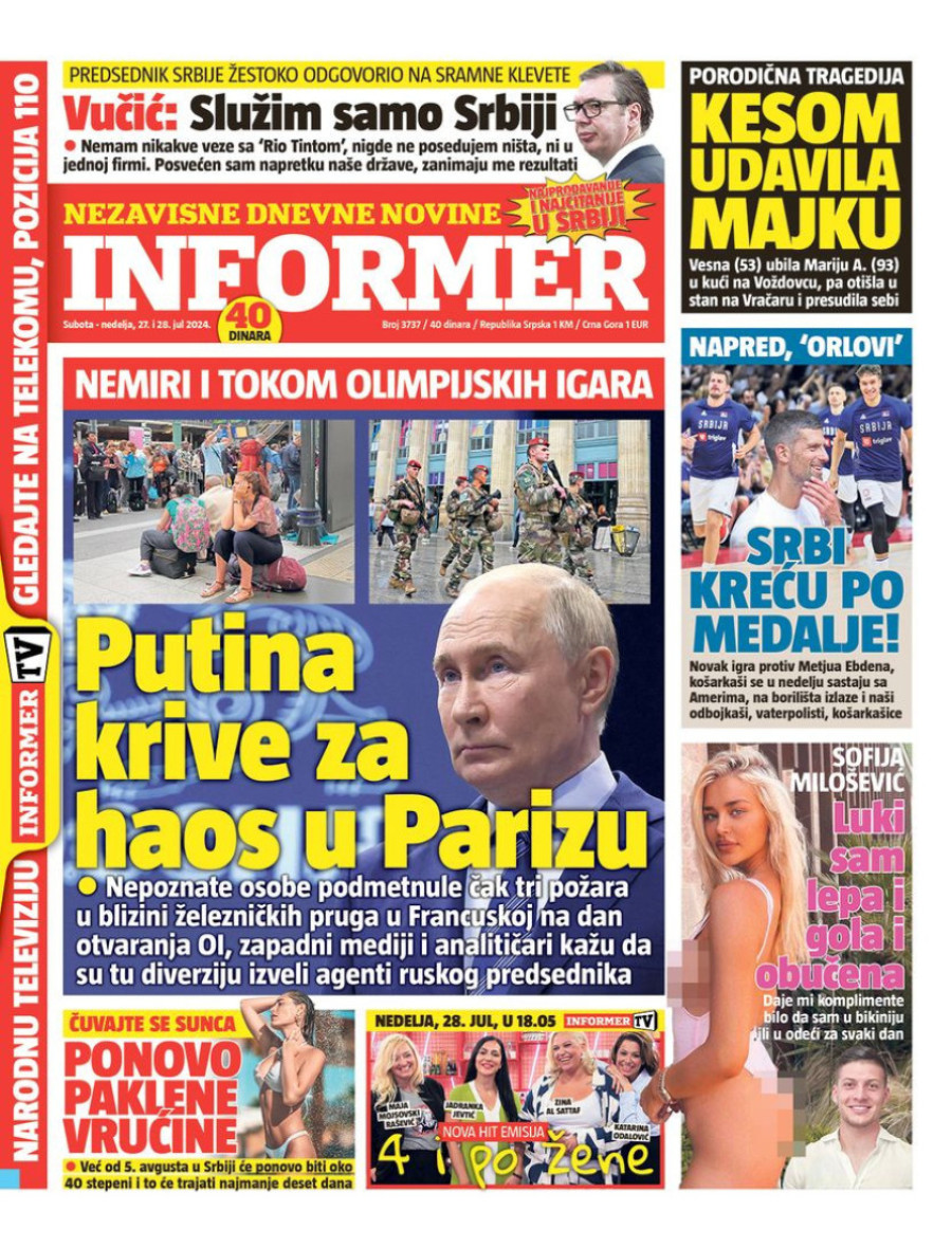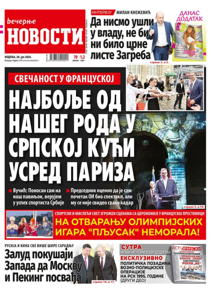 Dnevne novine u Srbiji za nedelju, 28. jul 2024. godine na naslovnim stranama najavljuju brojne aktuelne društveno-političke teme.