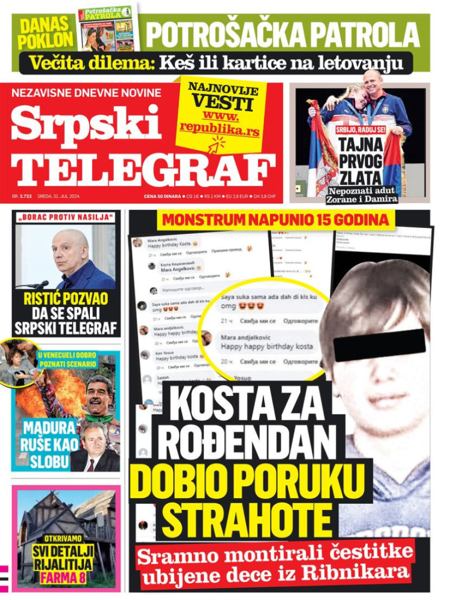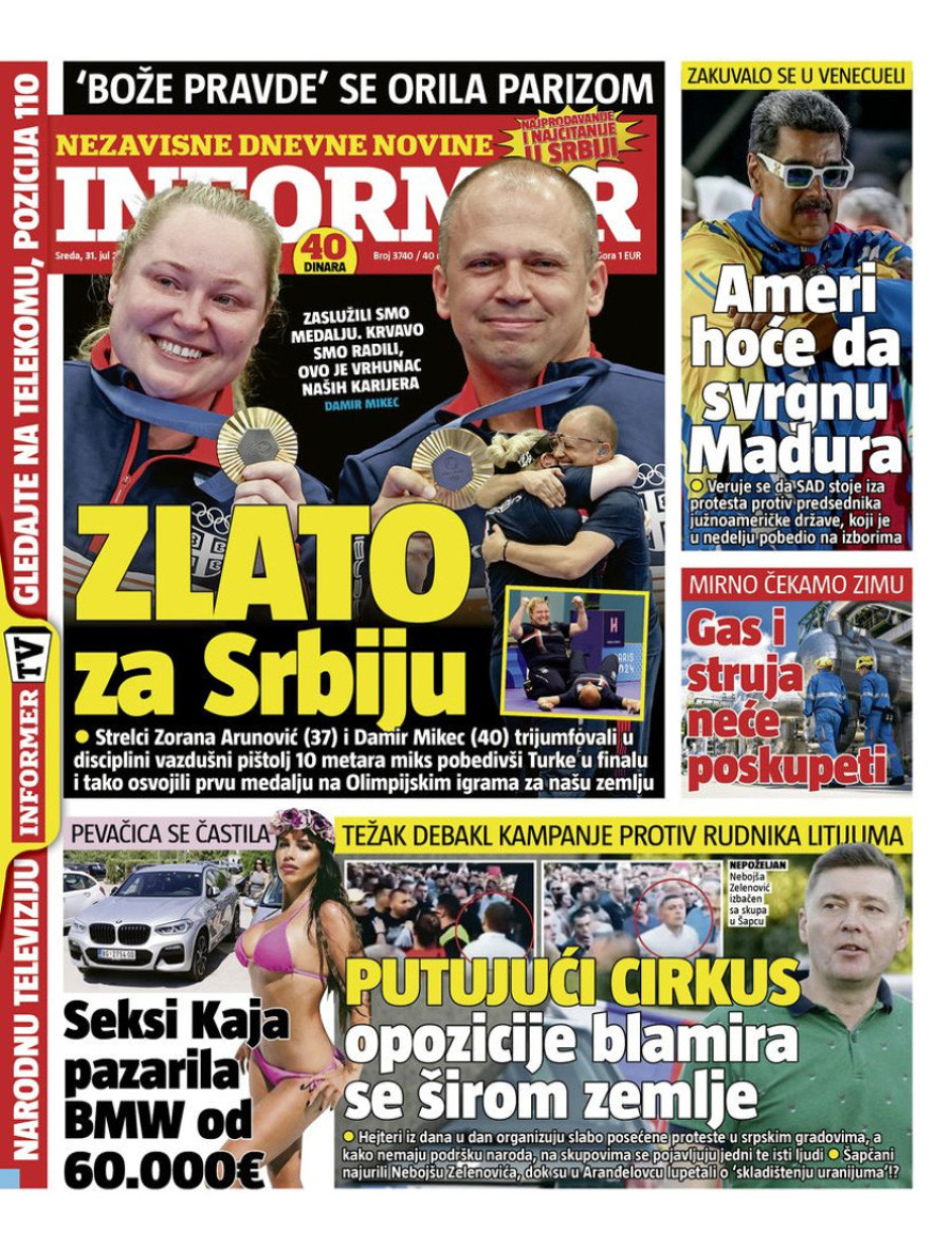 Naslovne strane dnevnih novina: Prelistavanje štampe za 31. jul 2024. godine