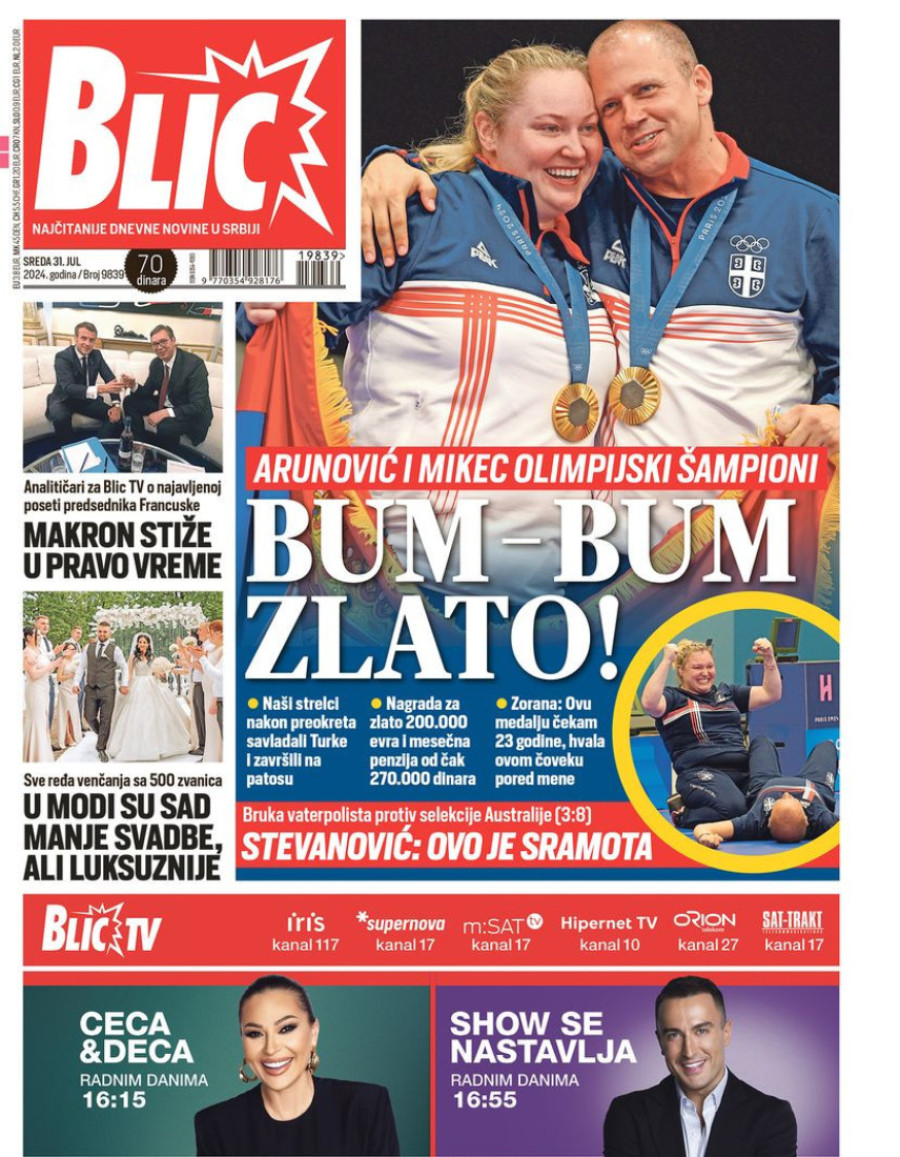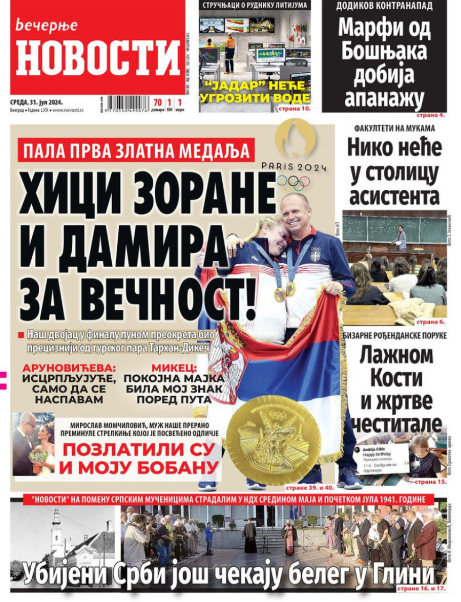Dnevne novine u Srbiji za sredu 31. jul 2024. godine, na naslovnim stranama najavljuju brojne aktuelne društveno-političke teme.
