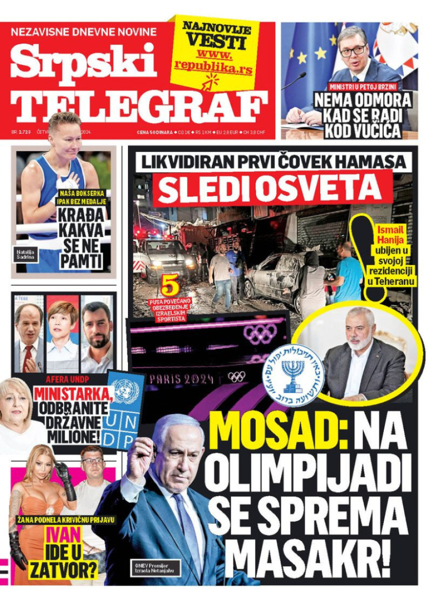 Naslovne strane dnevnih novina: Prelistavanje štampe za 1. avgust 2024. godine