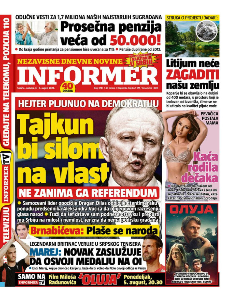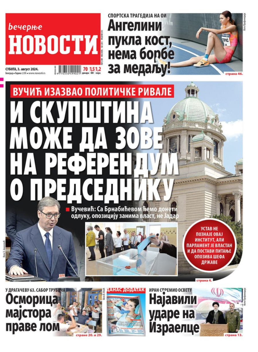 Dnevne novine u Srbiji za subotu 3. avgust 2024. godine, na naslovnim stranama najavljuju brojne aktuelne društveno-političke teme.