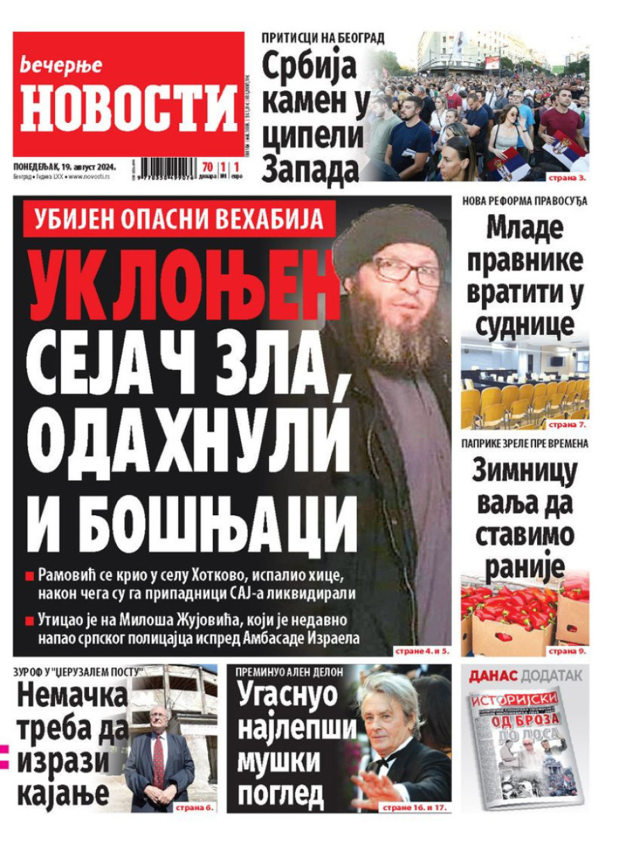 Dnevne novine u Srbiji za ponedeljak 19. avgust 2024. godine, na naslovnim stranama najavljuju brojne aktuelne društveno-političke teme.