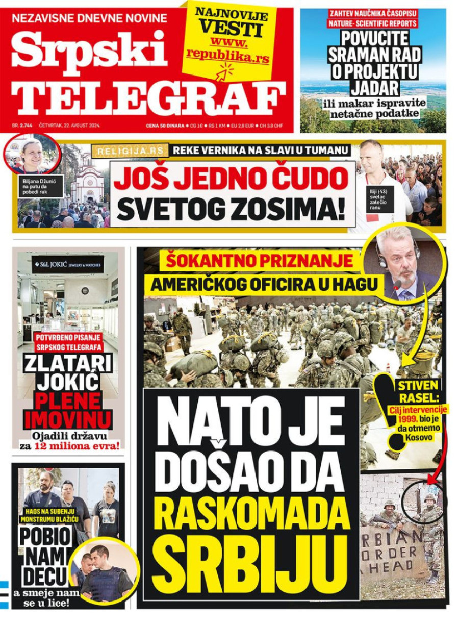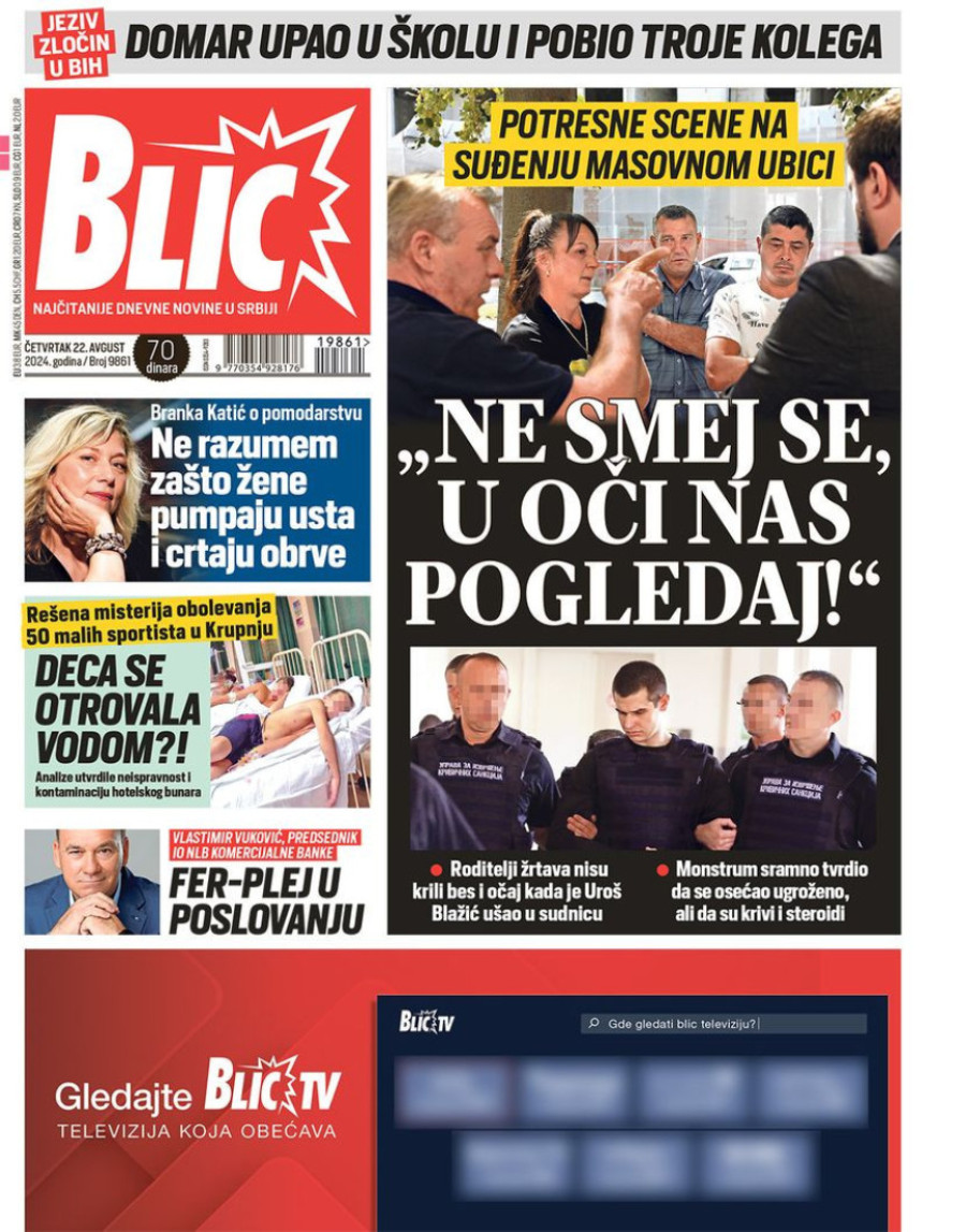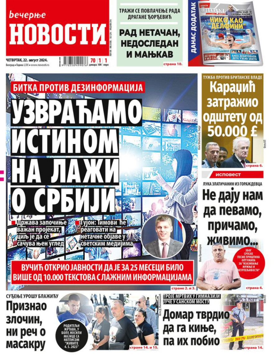 Dnevne novine u Srbiji za četvrtak 22. avgust 2024. godine, na naslovnim stranama najavljuju brojne aktuelne društveno-političke teme.