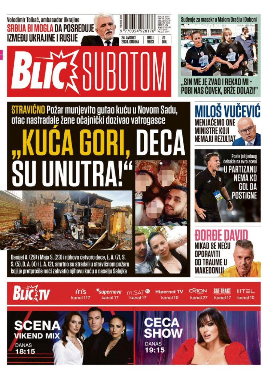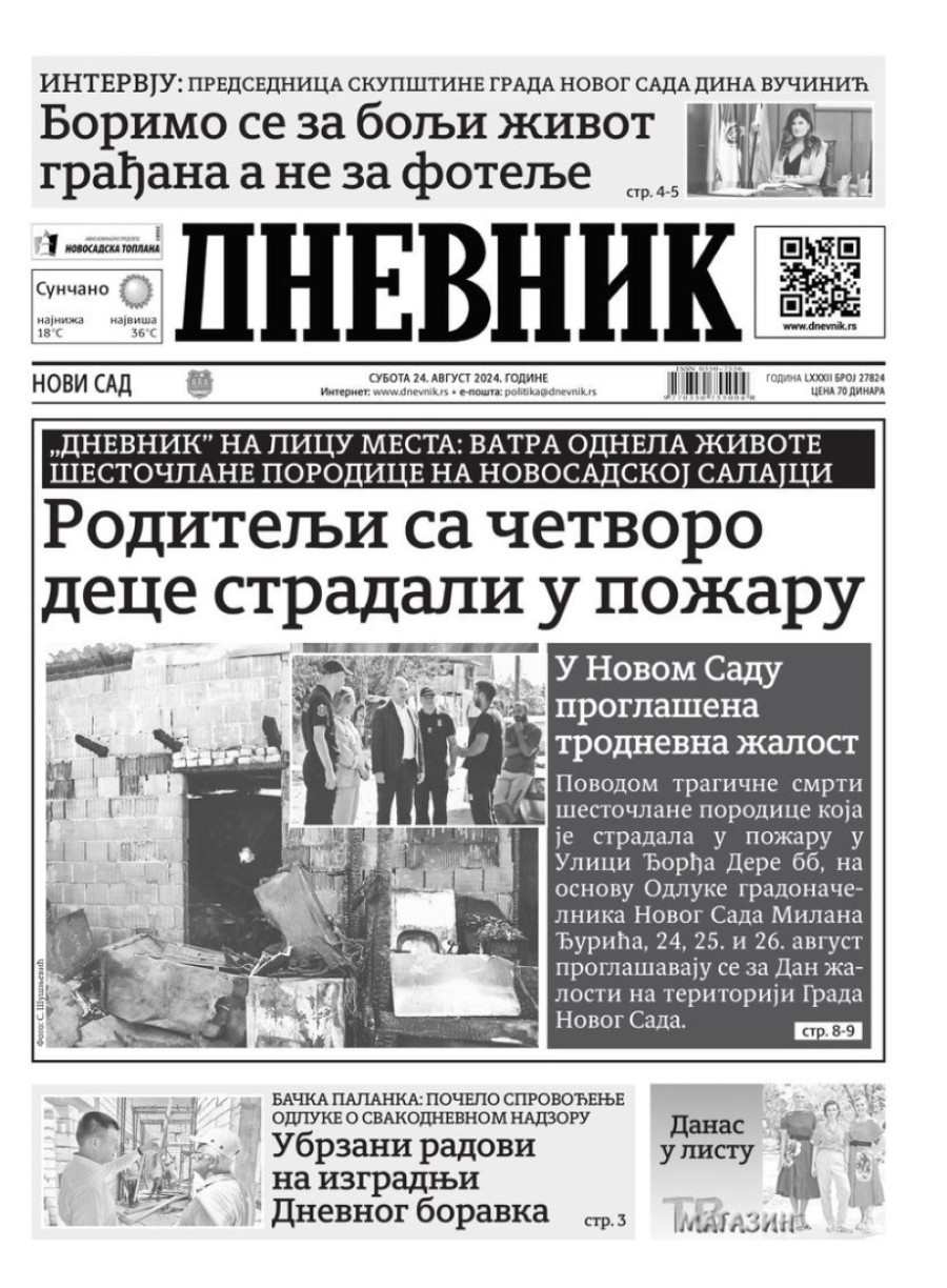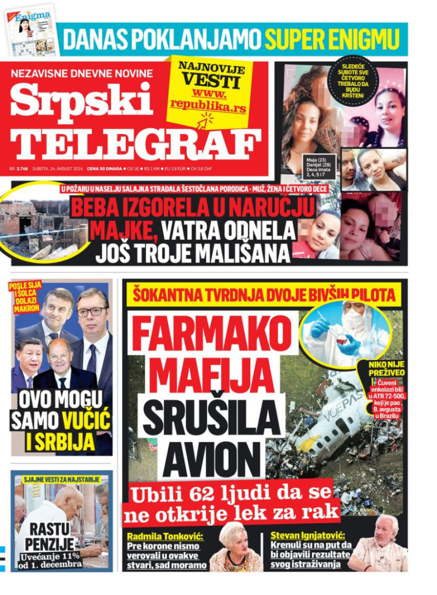 Dnevne novine u Srbiji za subotu 24. avgust 2024. godine, na naslovnim stranama najavljuju brojne aktuelne društveno-političke teme.