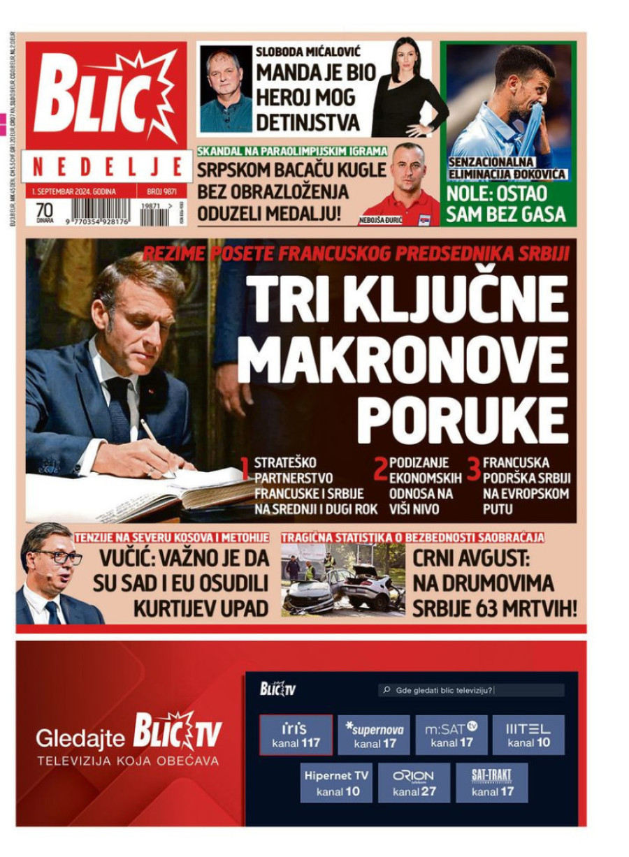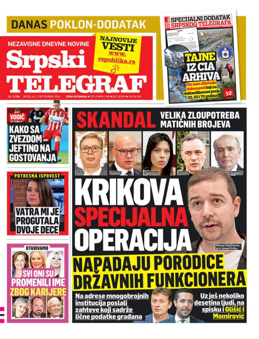 Dnevne novine u Srbiji za nedelju 1. septembar 2024. godine, na naslovnim stranama najavljuju brojne aktuelne društveno-političke teme.
