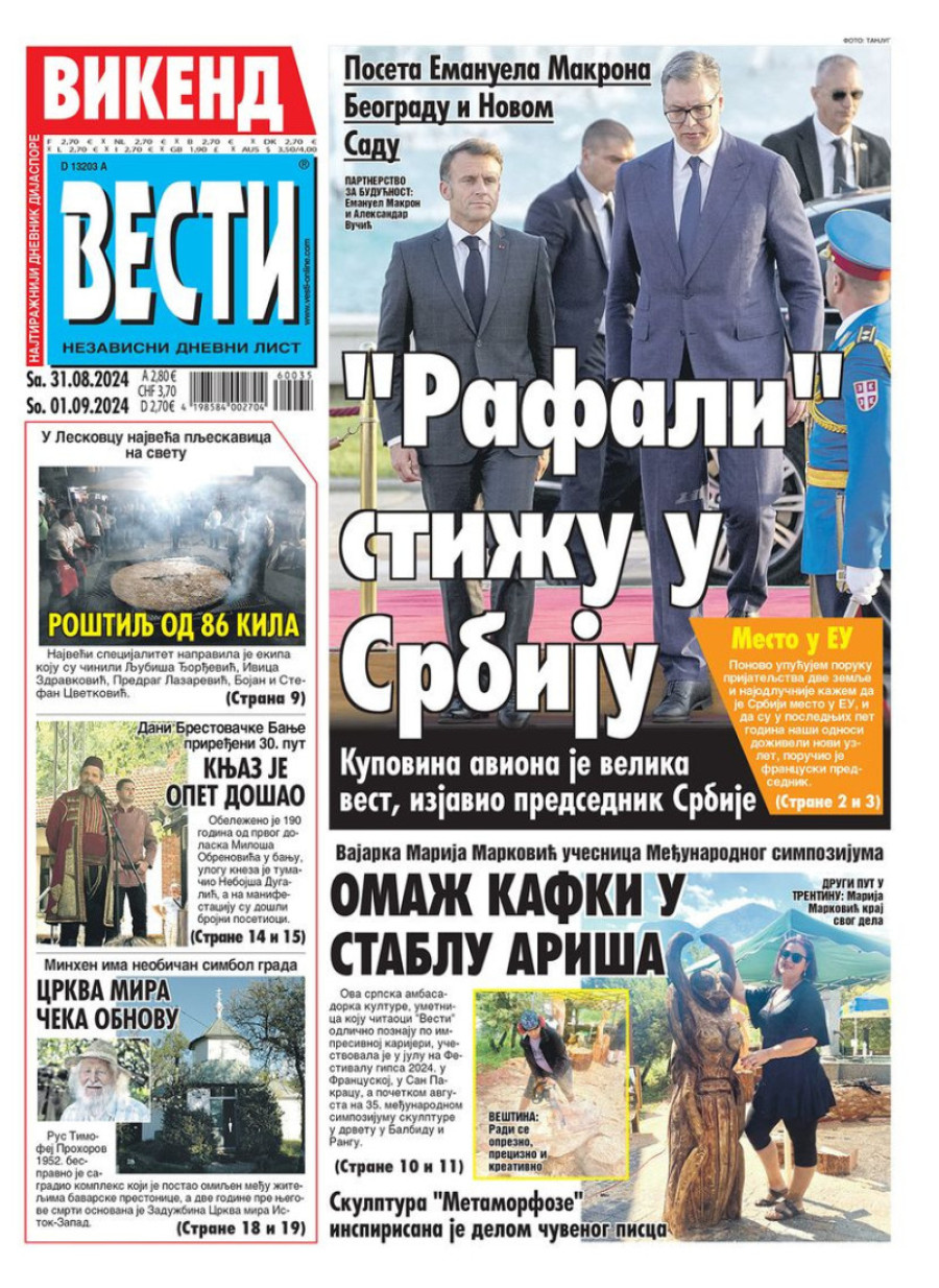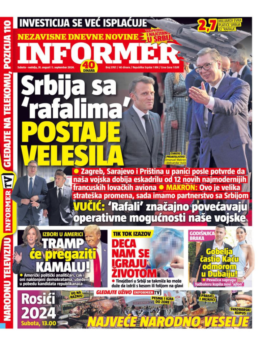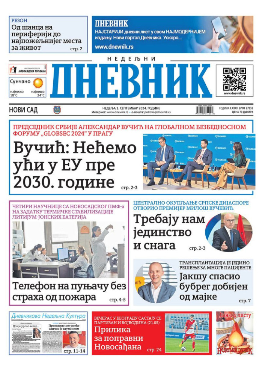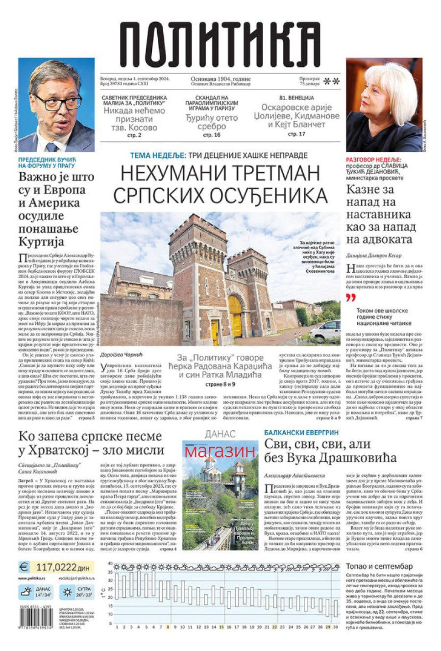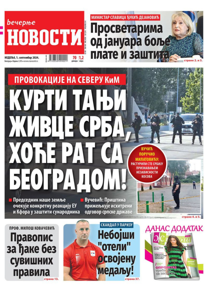 Naslovne strane dnevnih novina: Prelistavanje štampe za 1. septembar 2024. godine