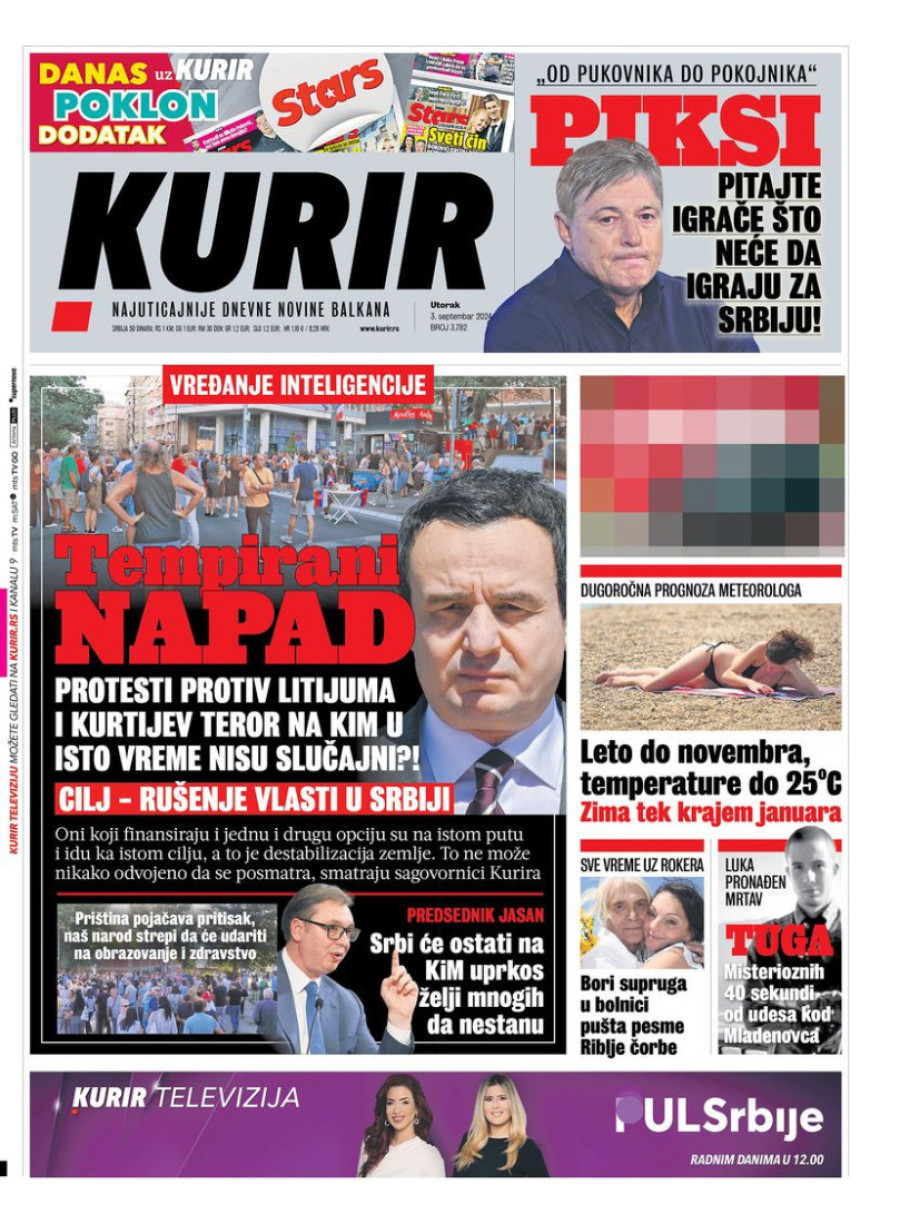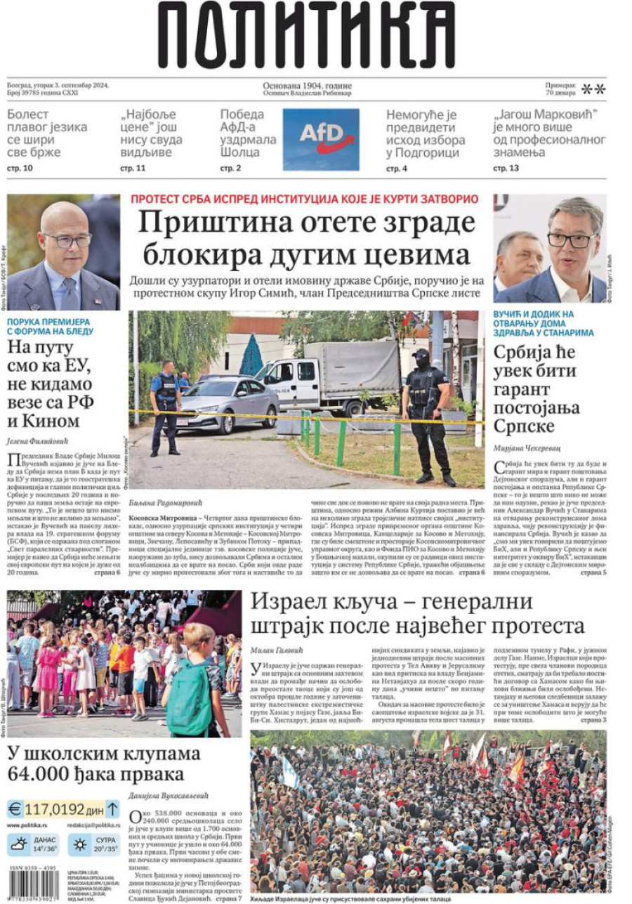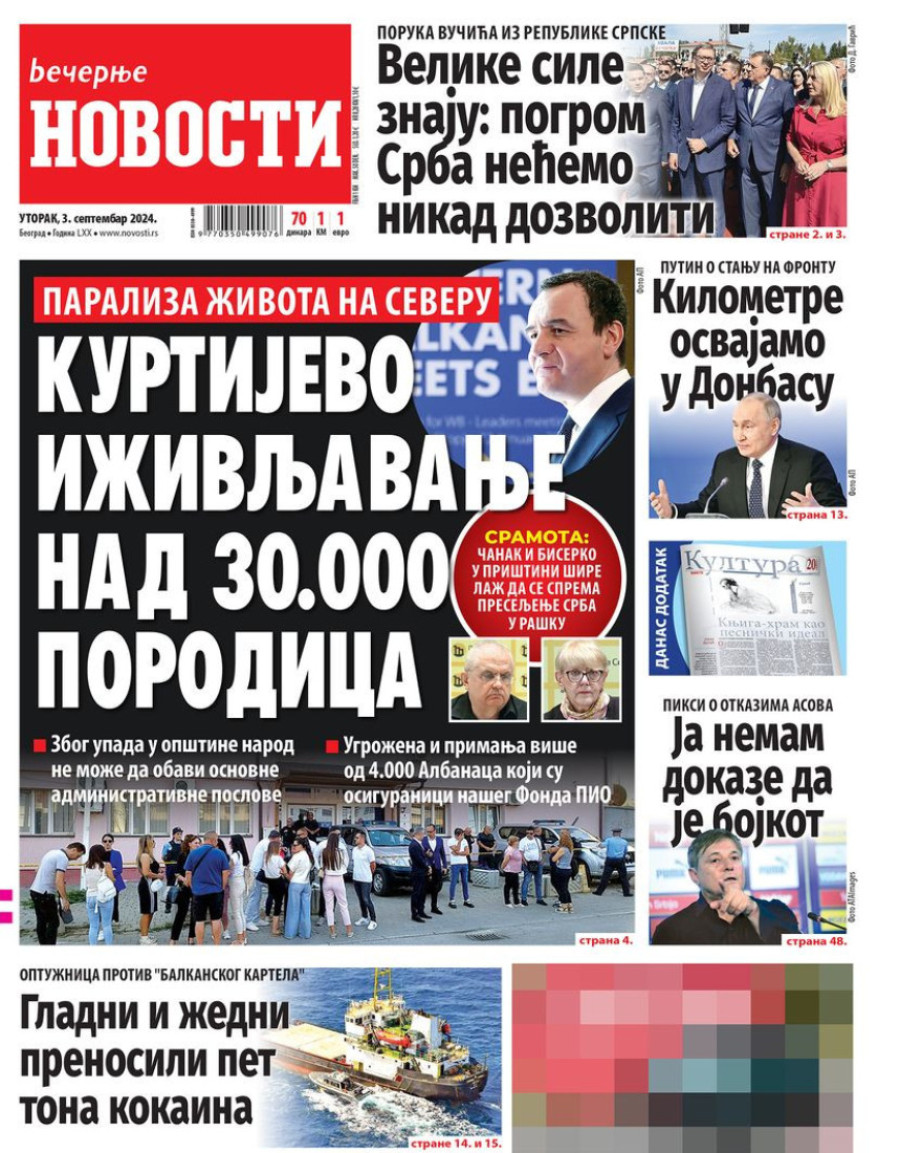 Dnevne novine u Srbiji za utorak 3. septembar 2024. godine, na naslovnim stranama najavljuju brojne aktuelne društveno-političke teme.