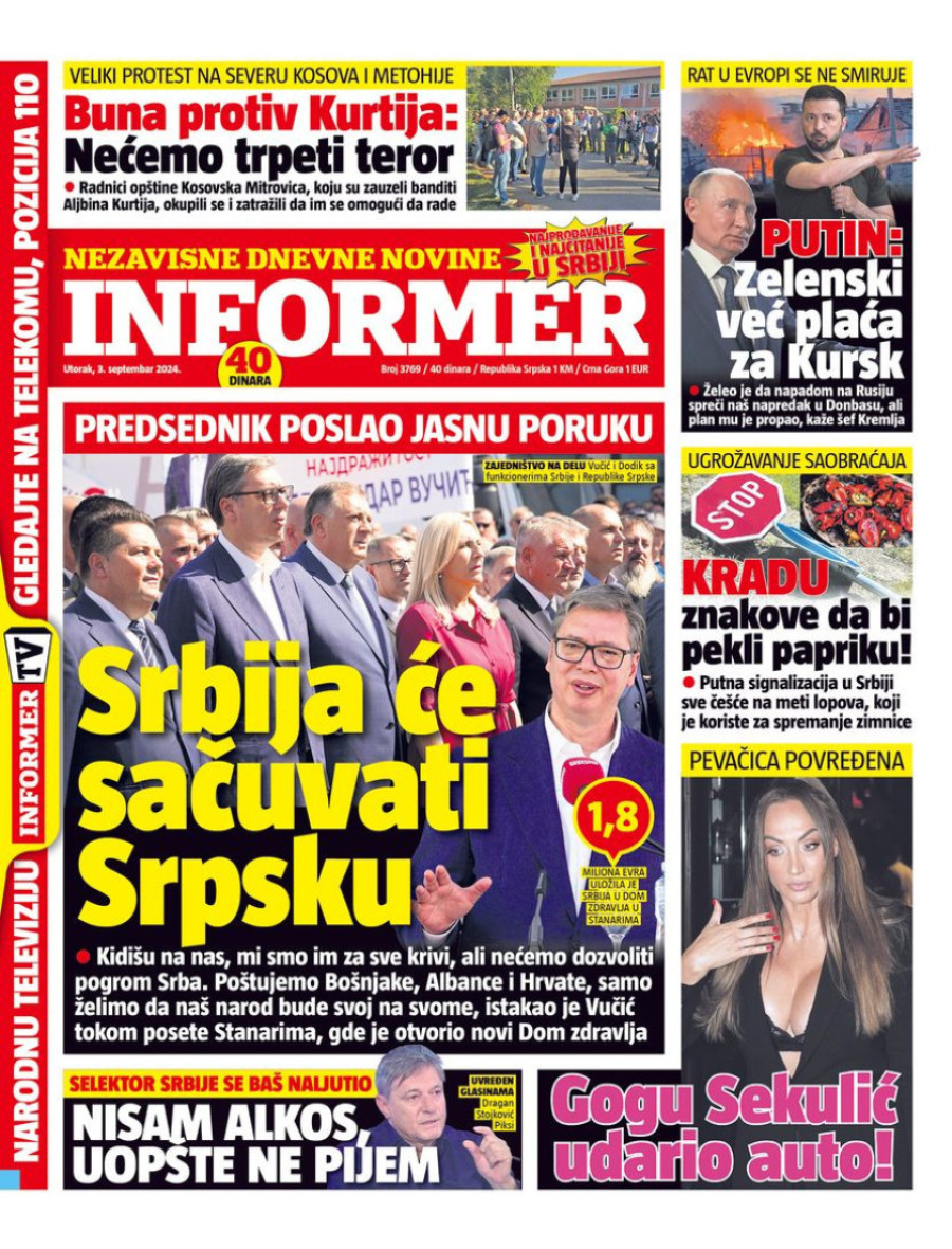 Naslovne strane dnevnih novina: Prelistavanje štampe za 3. septembar 2024. godine