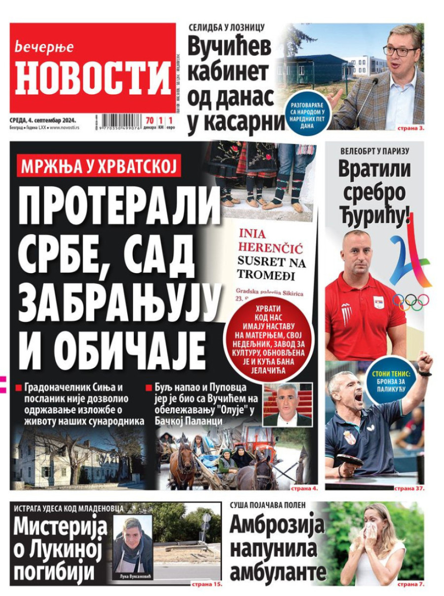 Naslovne strane dnevnih novina: Prelistavanje štampe za 4. septembar 2024. godine