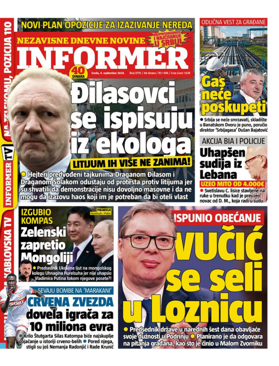 Dnevne novine u Srbiji za sredu 4. septembar 2024. godine, na naslovnim stranama najavljuju brojne aktuelne društveno-političke teme.
