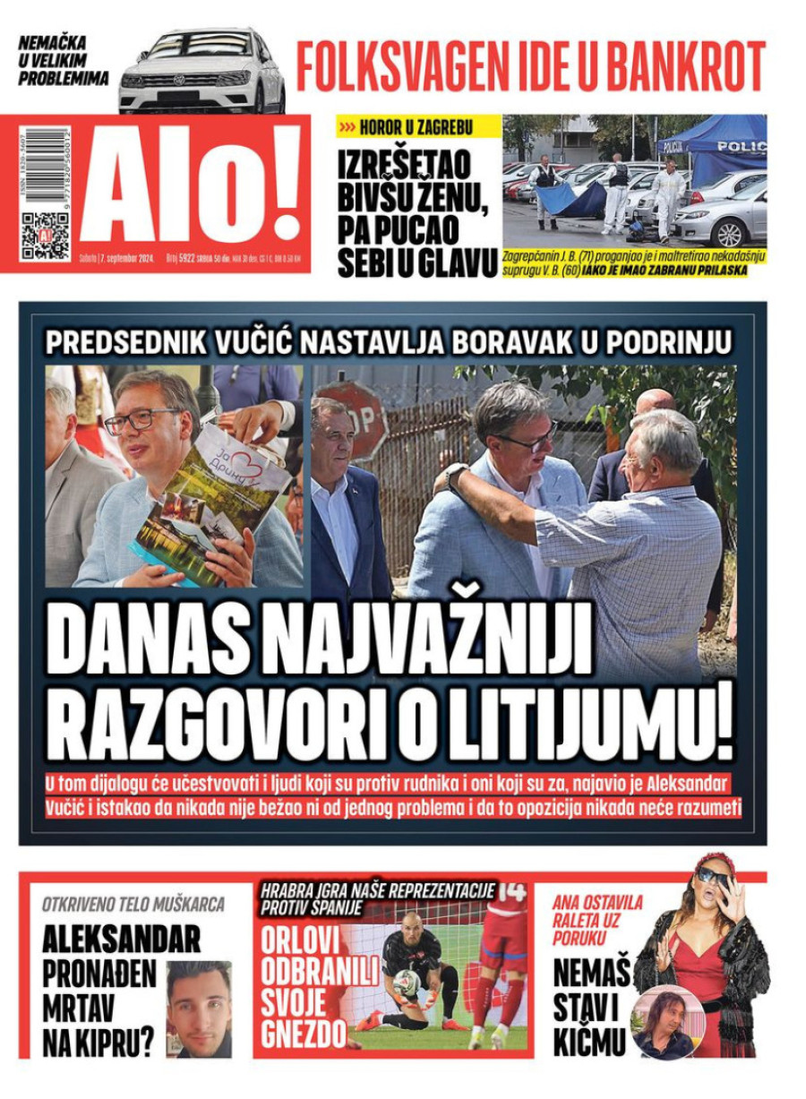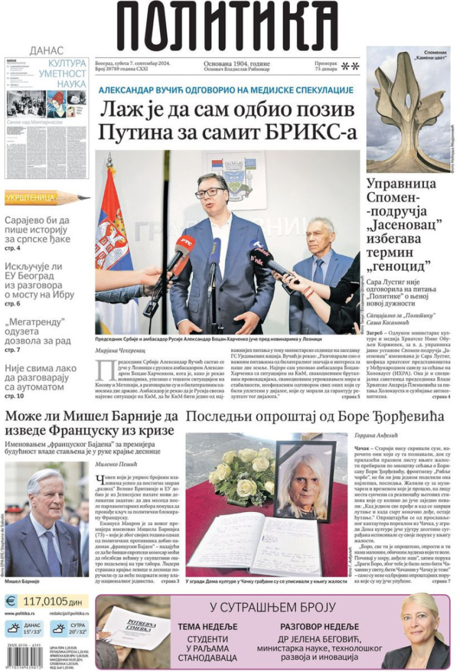Naslovne strane dnevnih novina: Prelistavanje štampe za 7. septembar 2024. godine