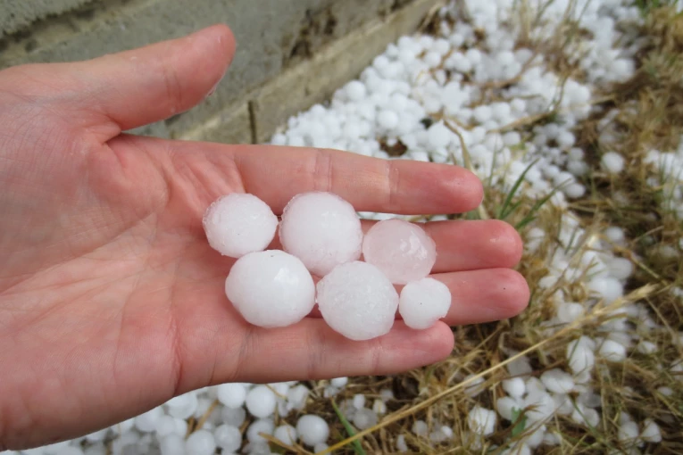 Grad veličine lešnika, uz poneko krupnije ledeno zrno, padao je u Požegi, javlja dopisnik RTS-a.