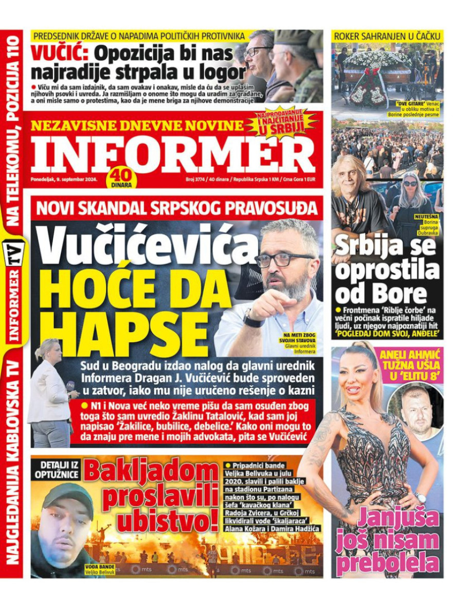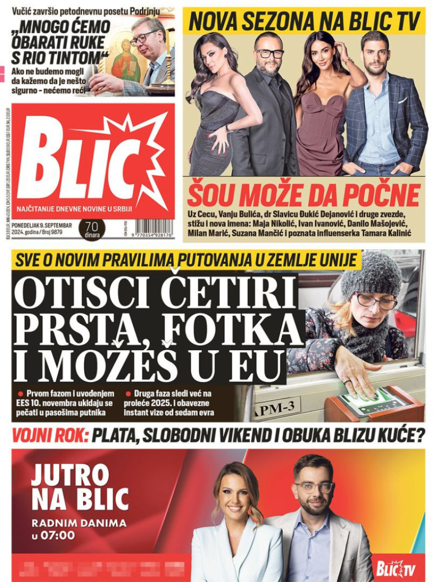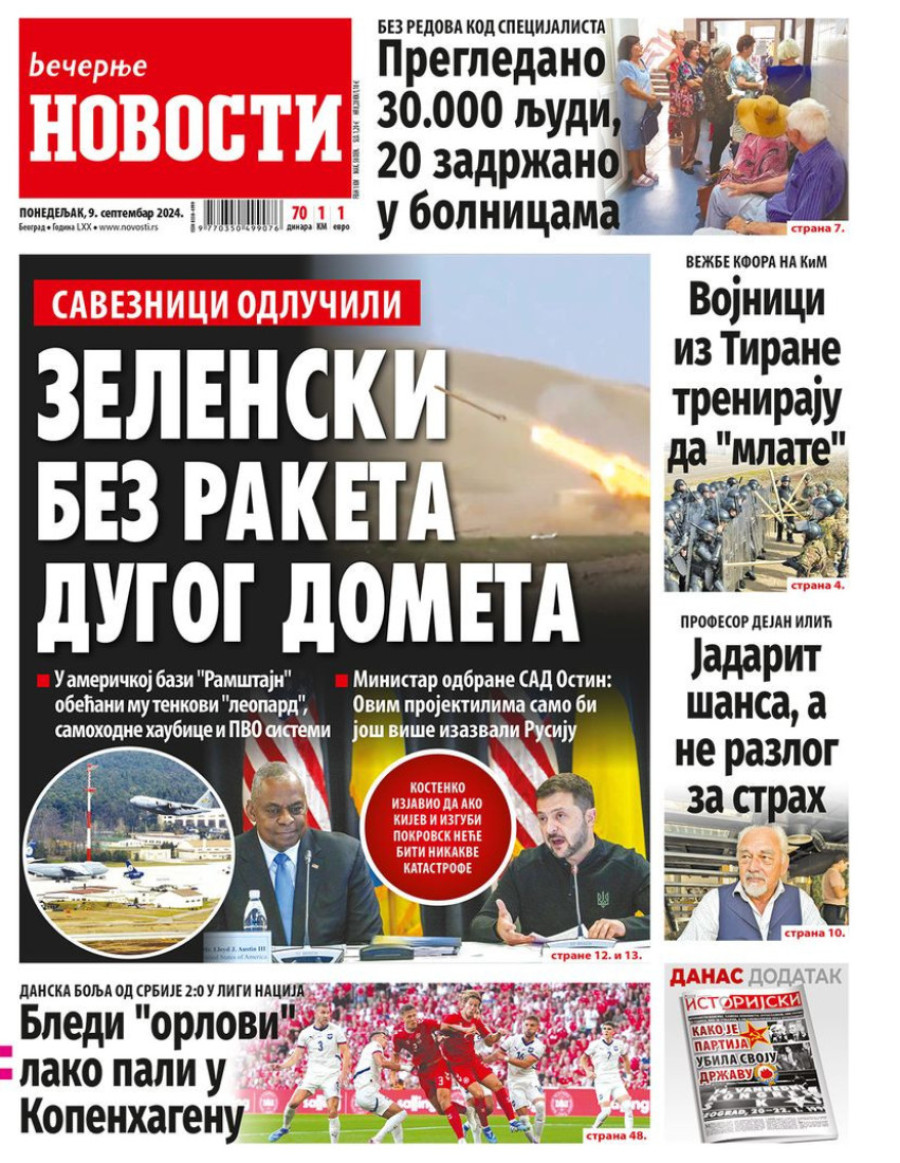 Naslovne strane dnevnih novina: Prelistavanje štampe za 9. septembar 2024. godine