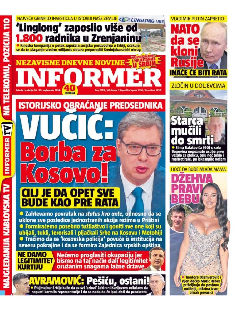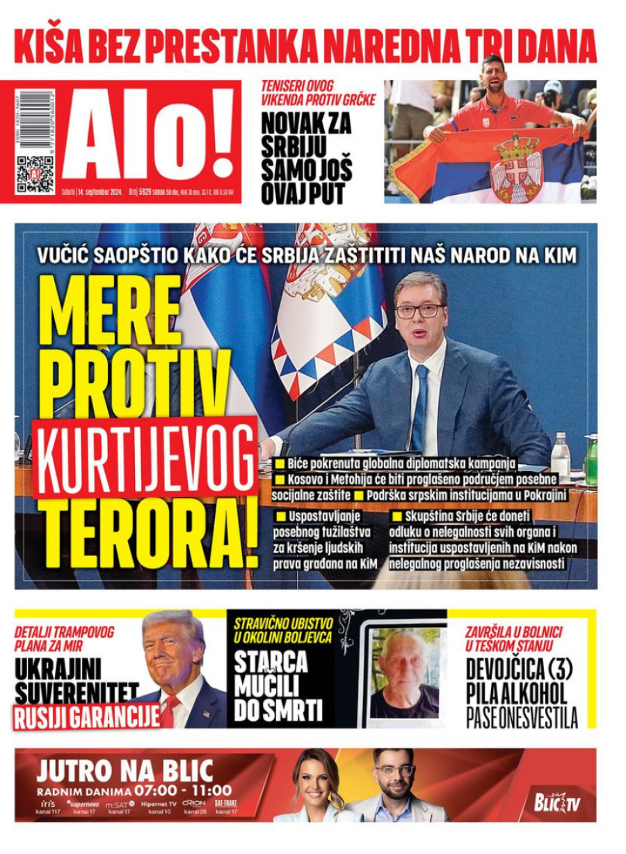 Naslovne strane dnevnih novina: Prelistavanje štampe za 14. septembar 2024. godine