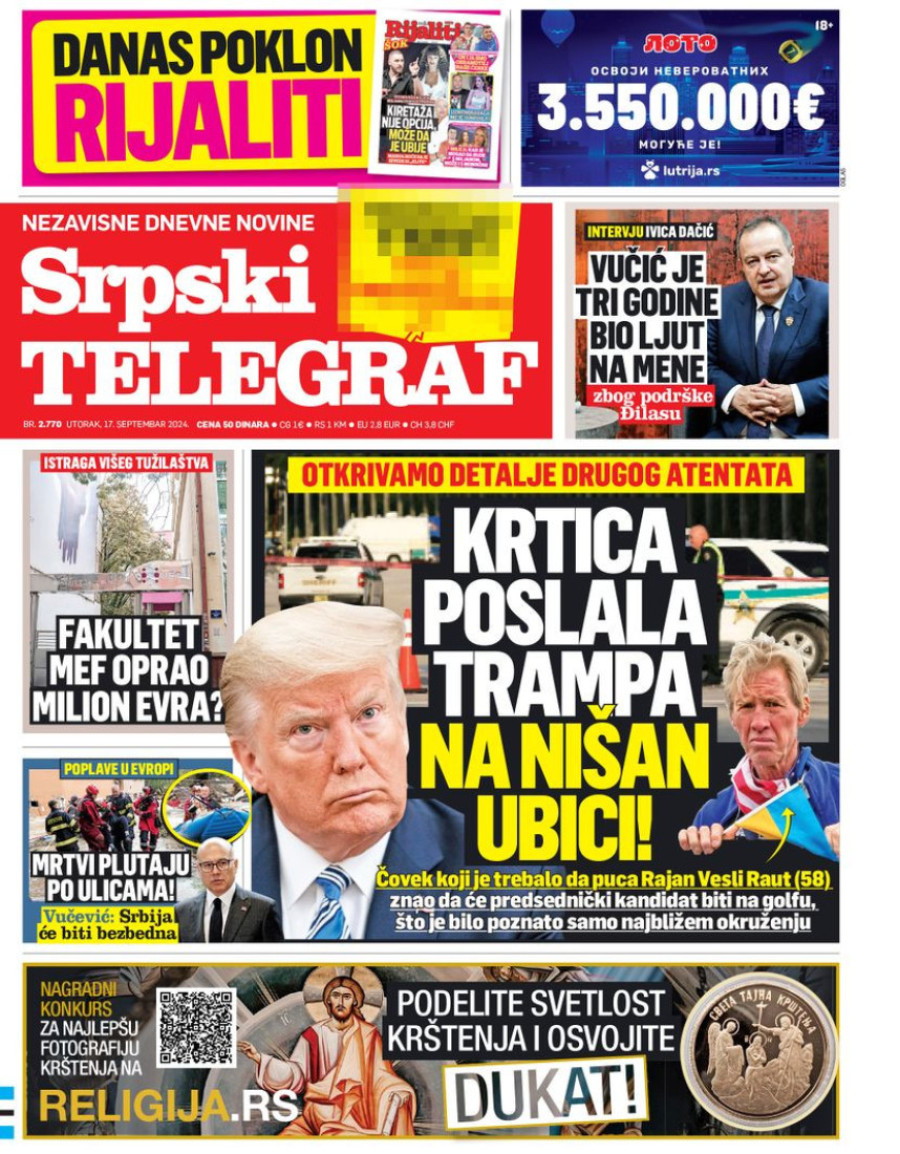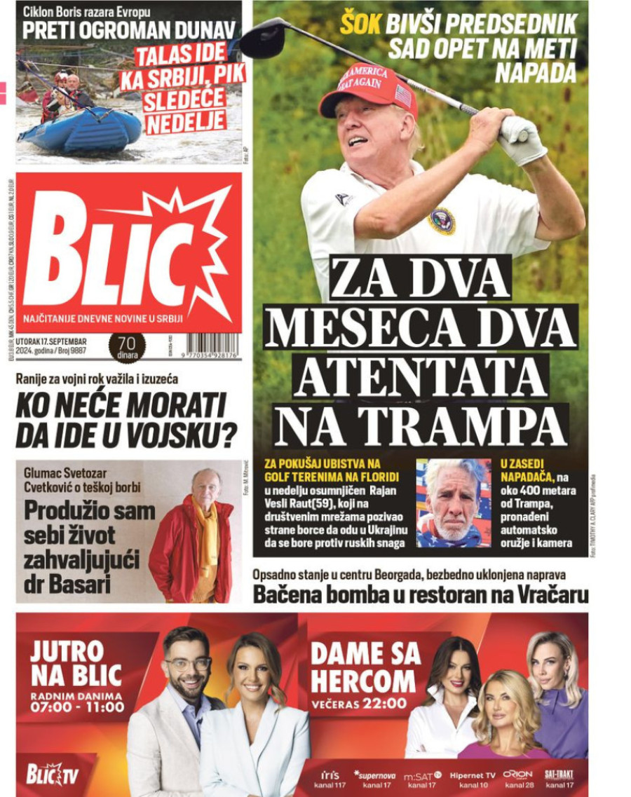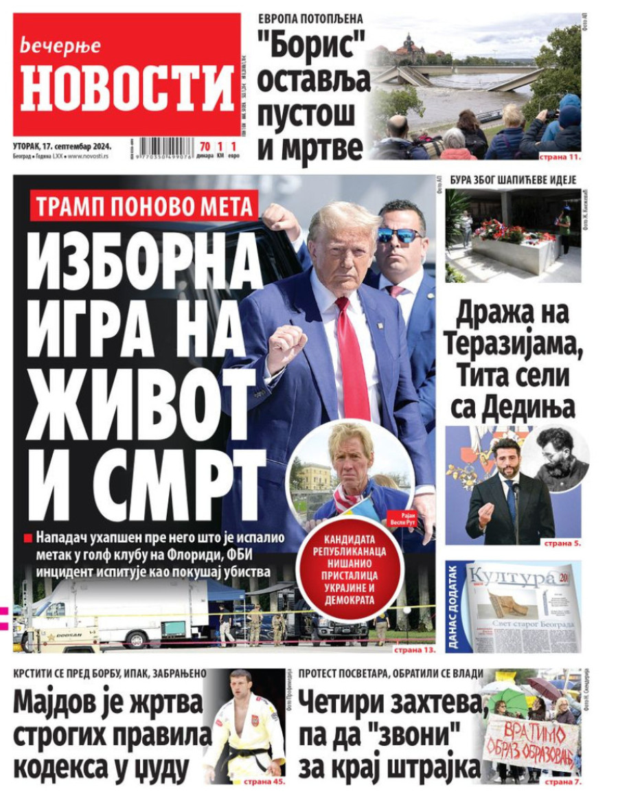 Naslovne strane dnevnih novina: Prelistavanje štampe za 17. septembar 2024. godine