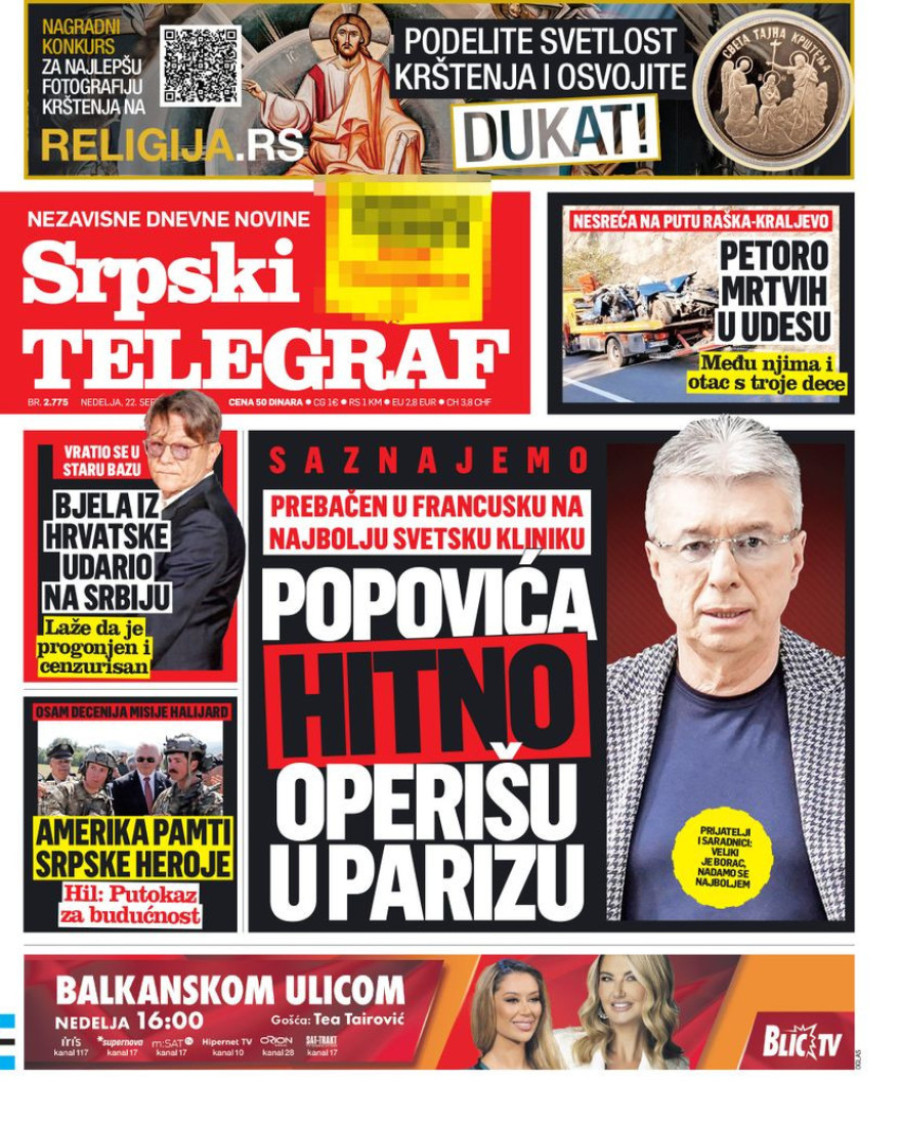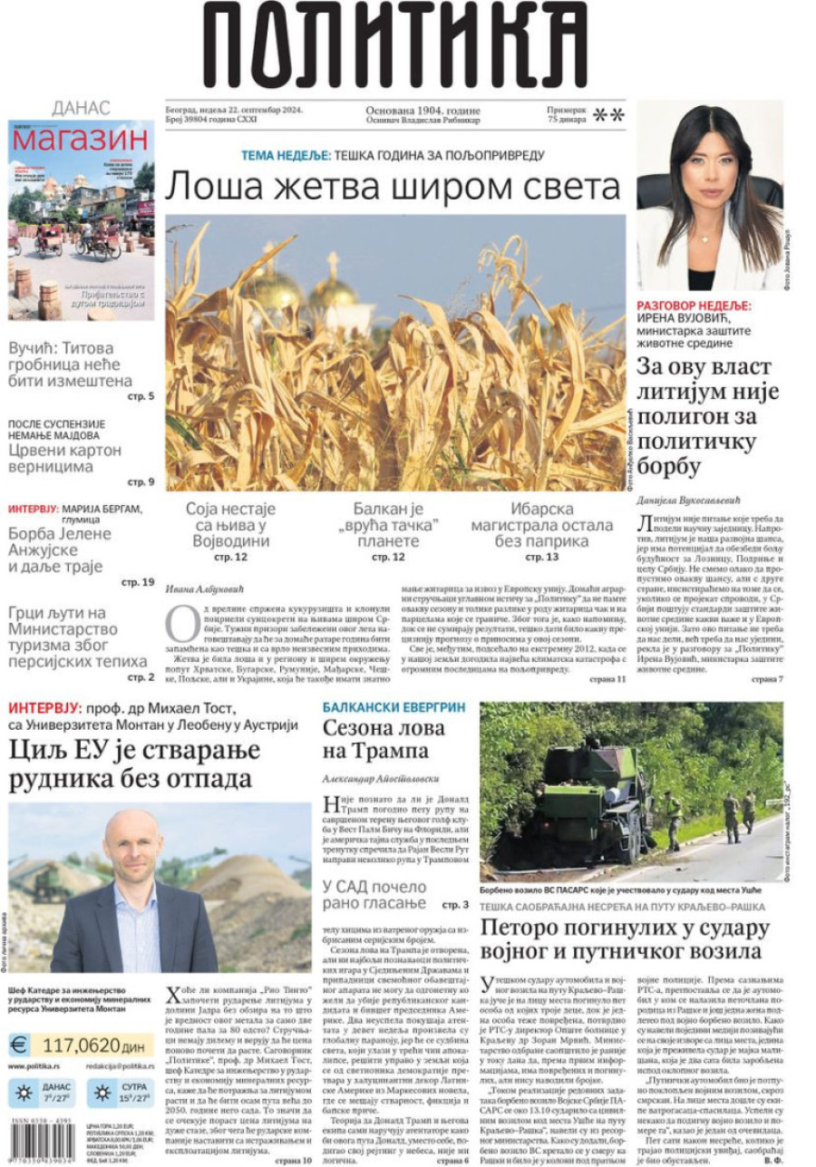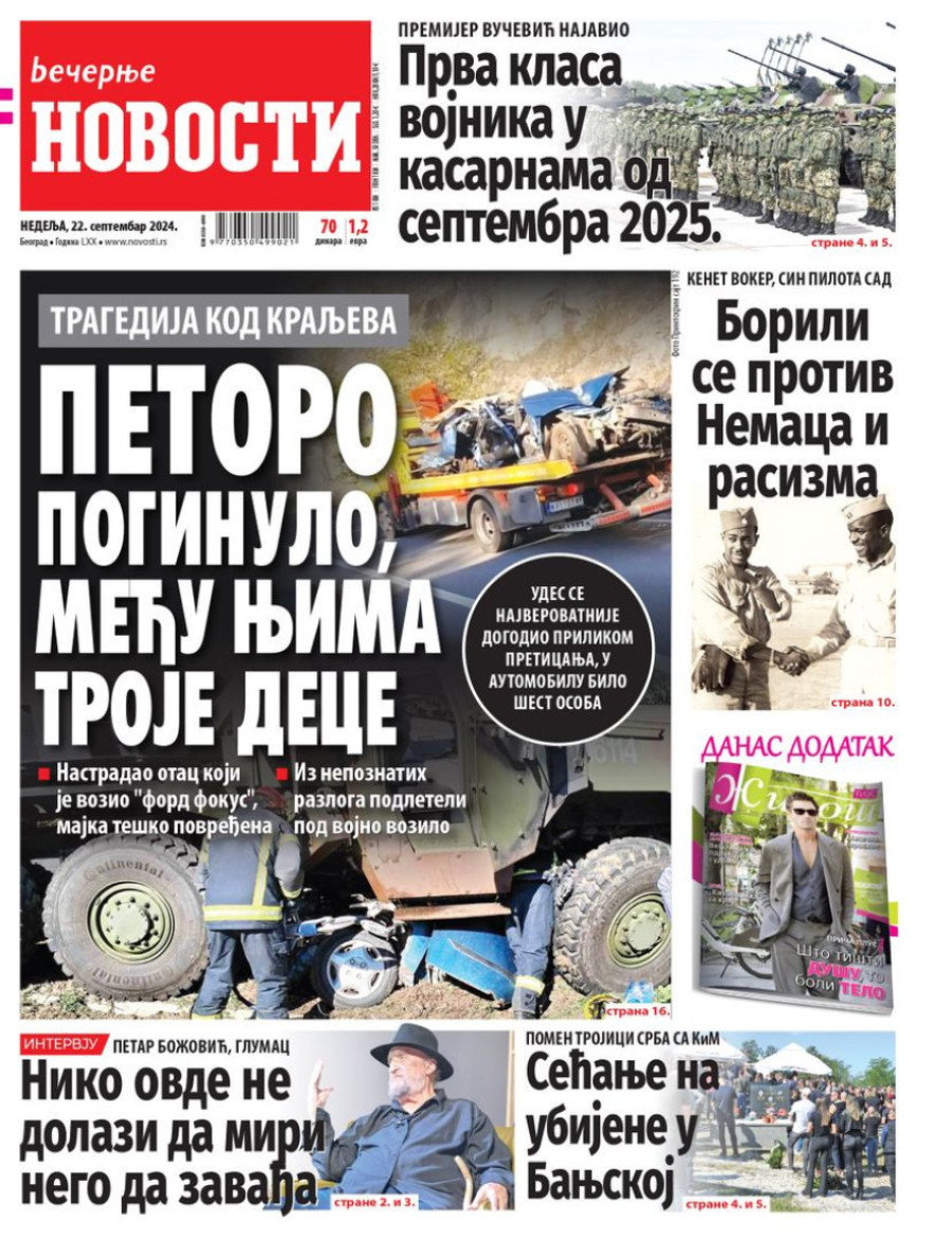 Naslovne strane dnevnih novina: Prelistavanje štampe za 22. septembar 2024. godine