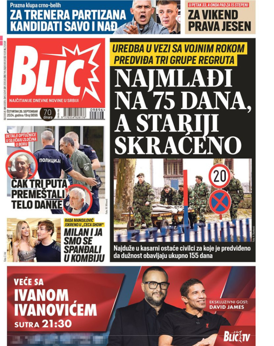Dnevne novine u Srbiji za četvrtak 26. septembar na naslovnim stranama najavljuju brojne aktuelne društveno-političke teme.