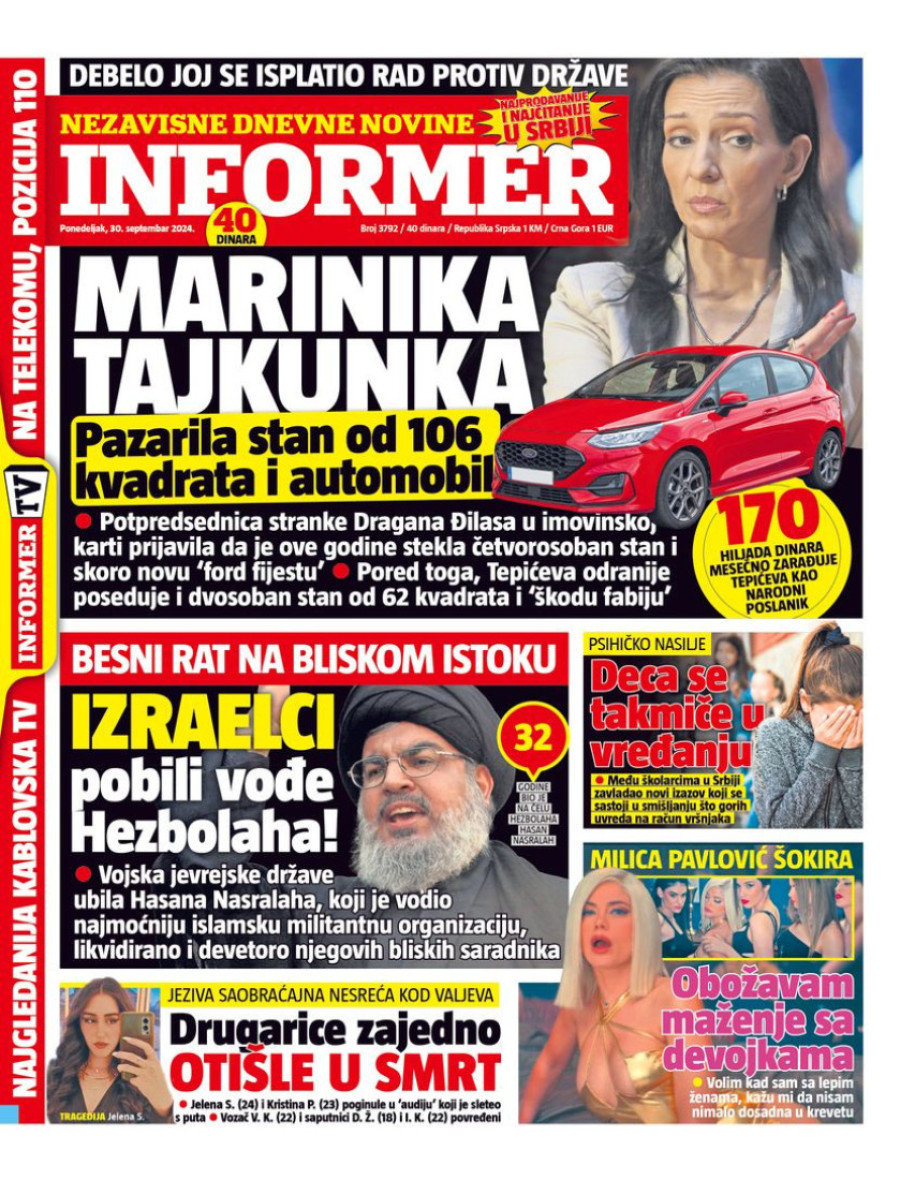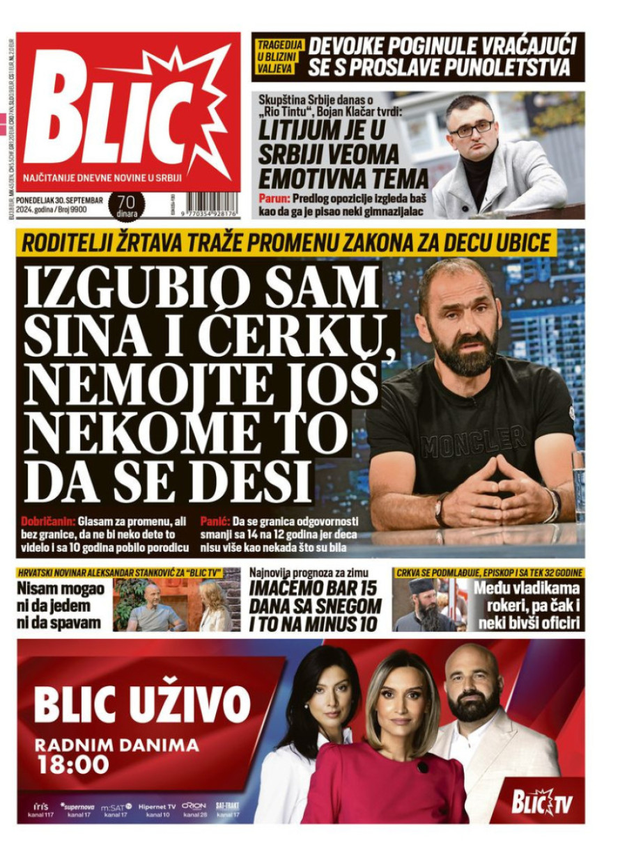 Naslovne strane dnevnih novina: Prelistavanje štampe za 30. septembar 2024. godine
