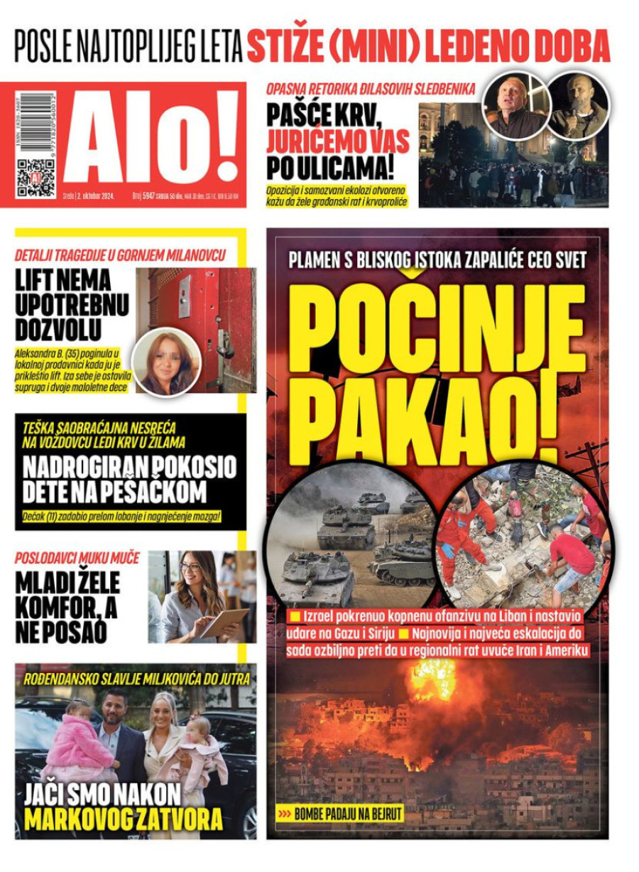 Naslovne strane dnevnih novina: Prelistavanje štampe za 2. oktobar 2024. godine
