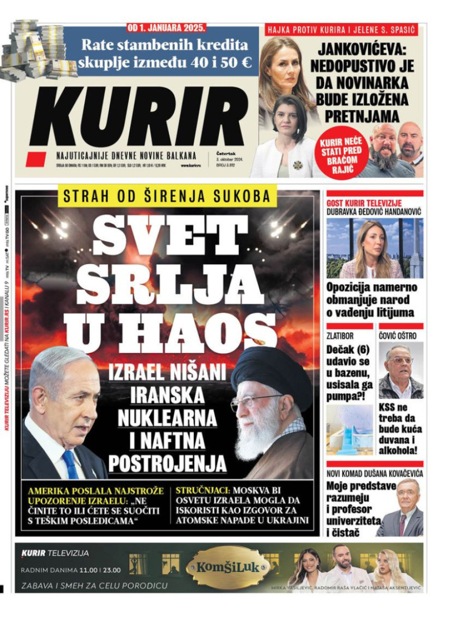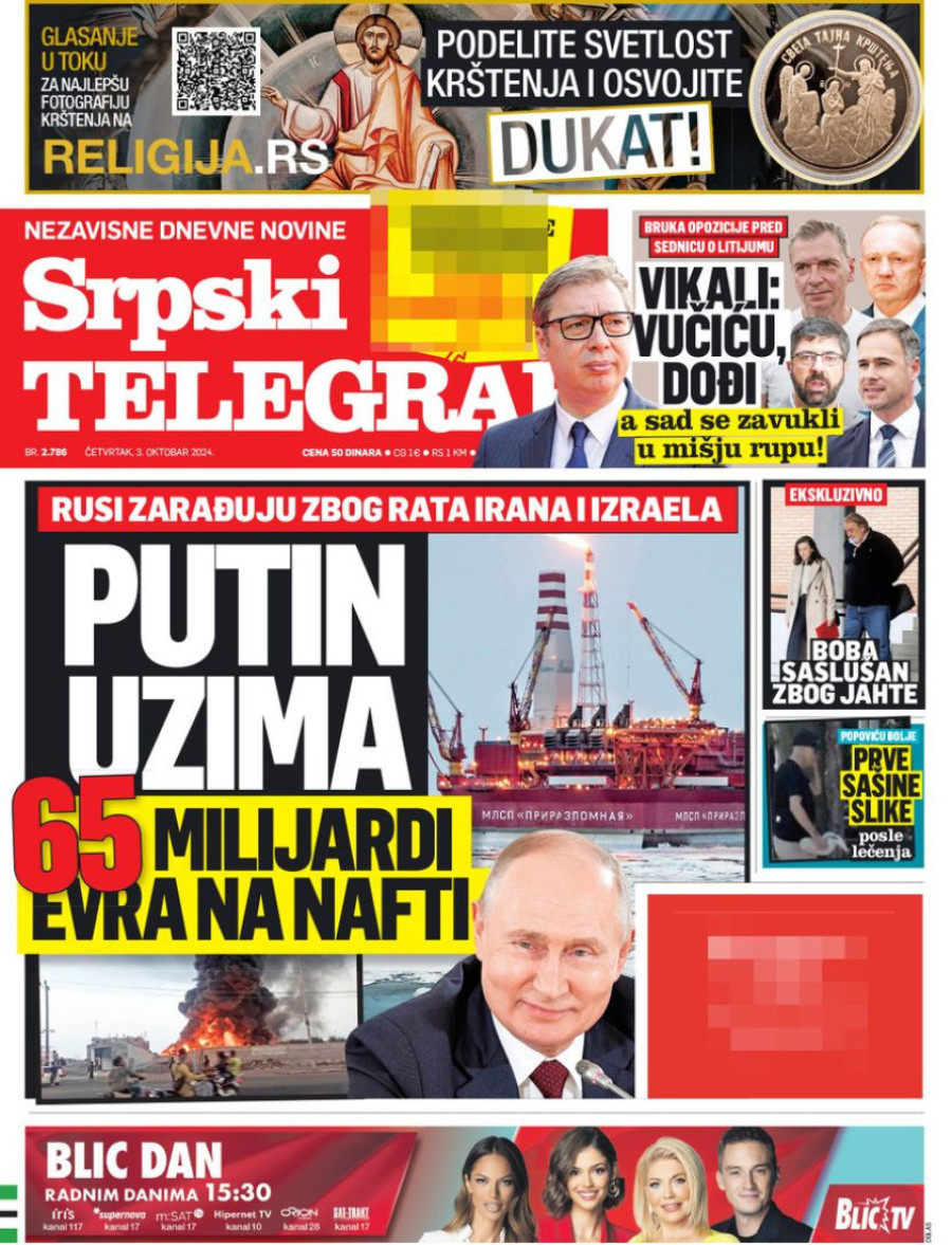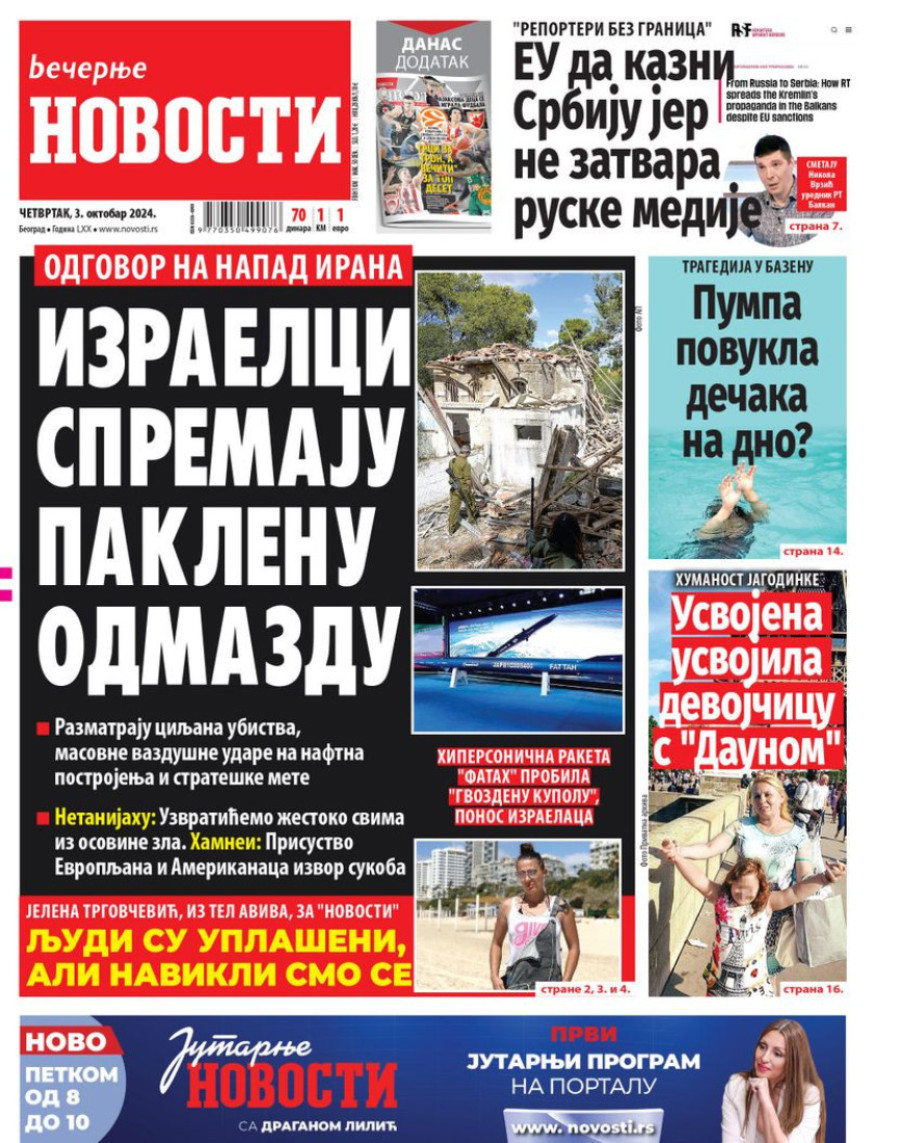Naslovne strane dnevnih novina: Prelistavanje štampe za 3. oktobar 2024. godine