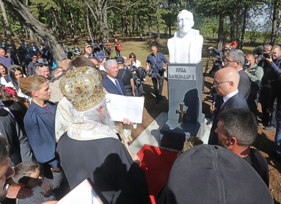 Premijer je takođe prisustvovao otkrivanju i osveštanju spomen-biste kralja Aleksandra Prvog Karađorđevića na Oplencu. Otkrivanju biste prisustvovali su i princ Aleksandar Karađorđević, koji je ranije danas dočekao Vučevića kada je stigao na Oplenac, i ministar za rad Nemanja Starović.