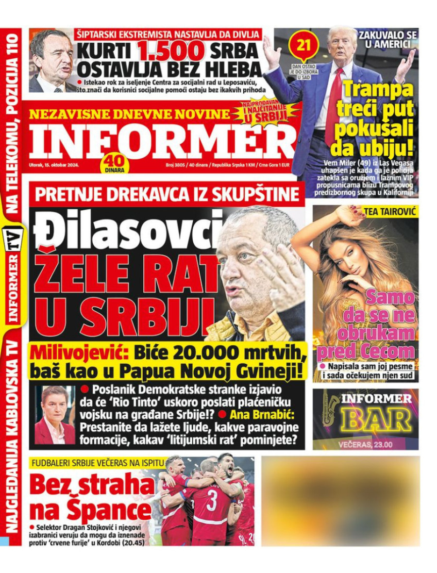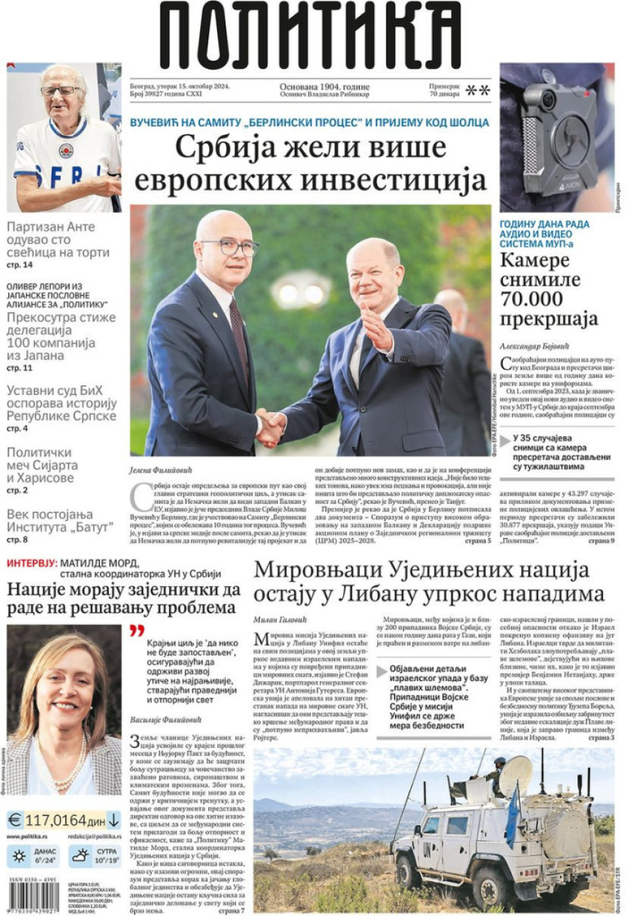 Naslovne strane dnevnih novina: Prelistavanje štampe za 15. oktobar 2024. godine