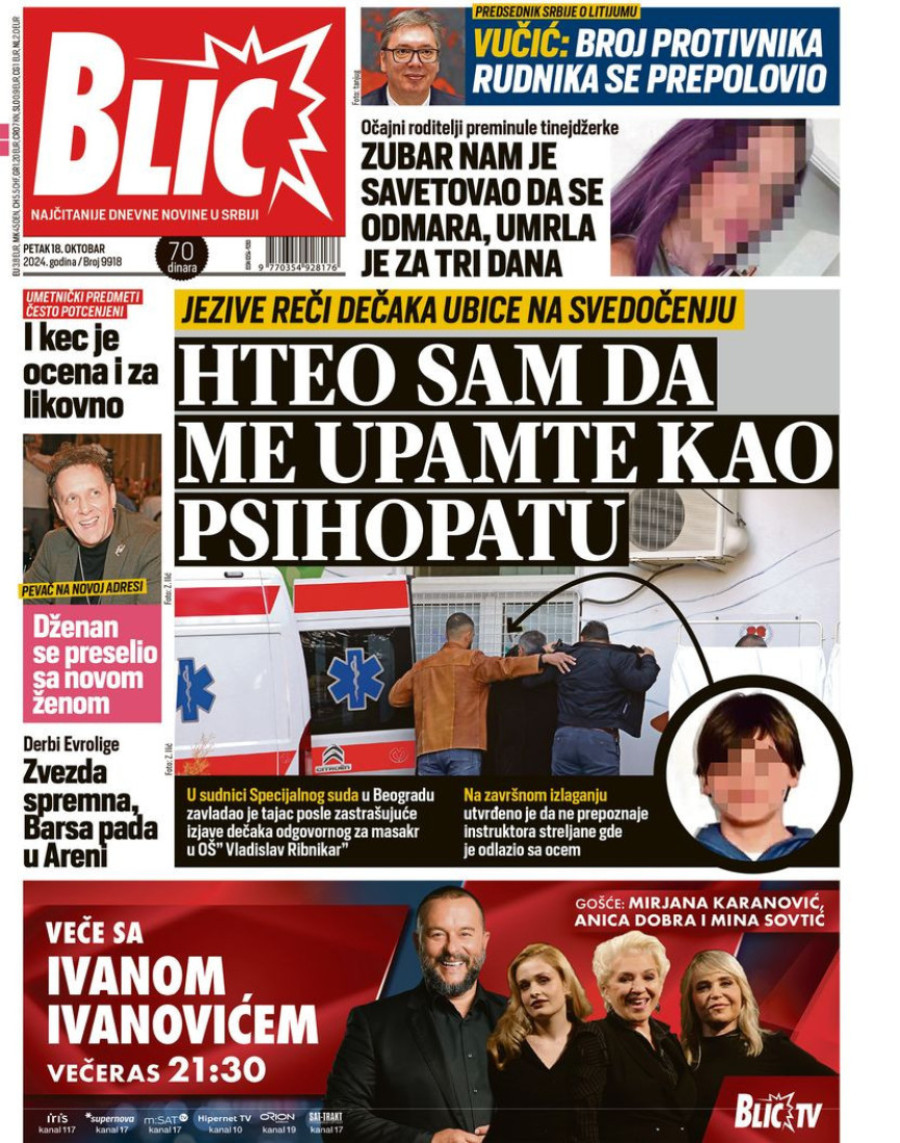 Naslovne strane dnevnih novina: Prelistavanje štampe za 18. oktobar 2024. godine