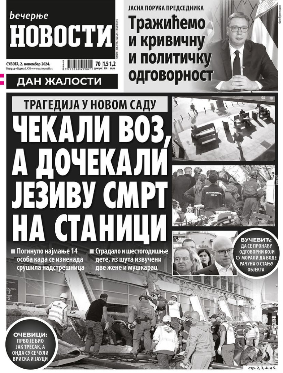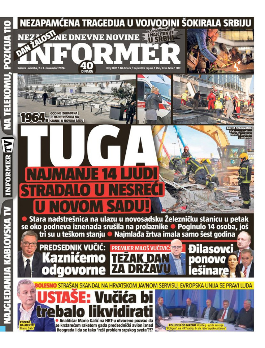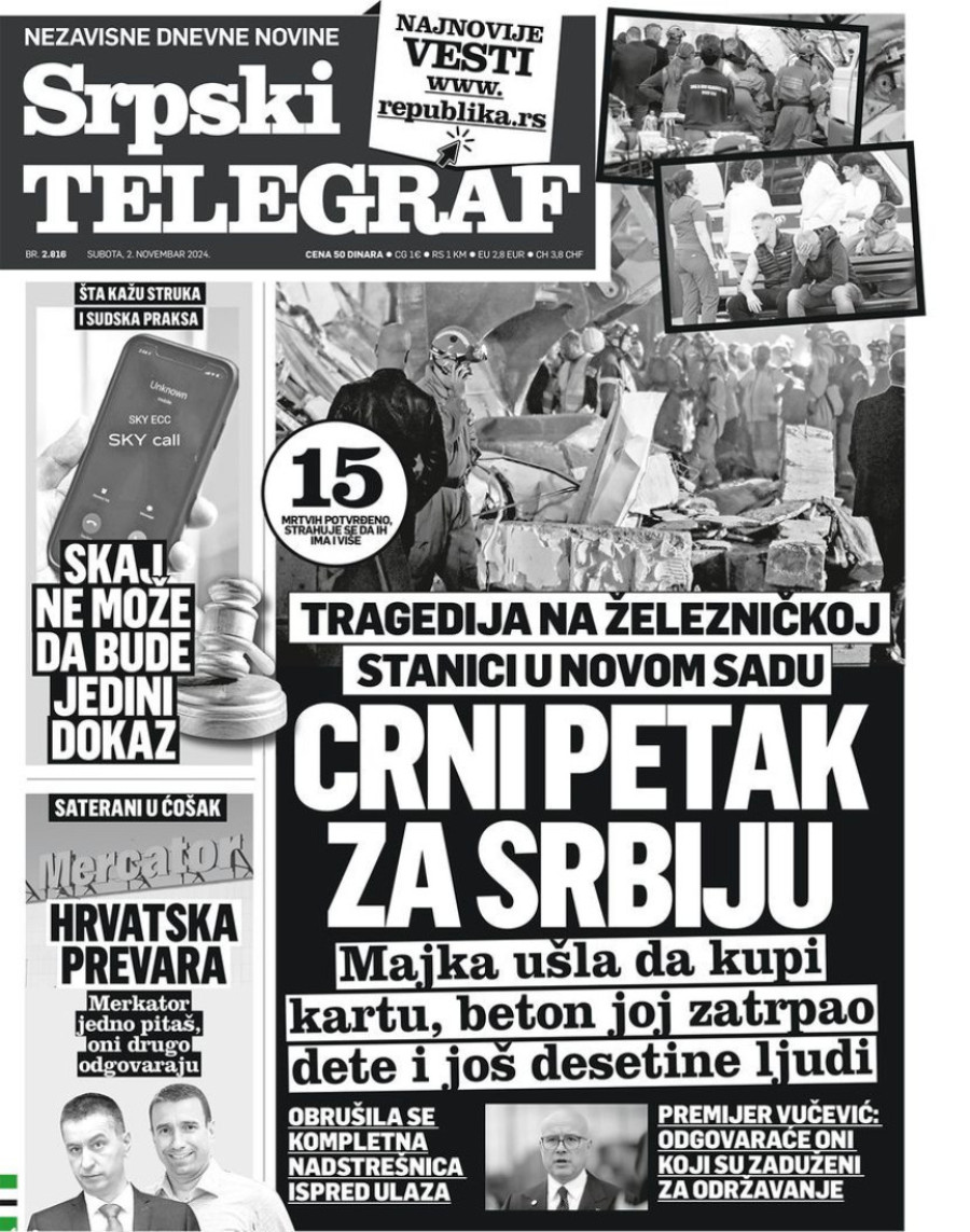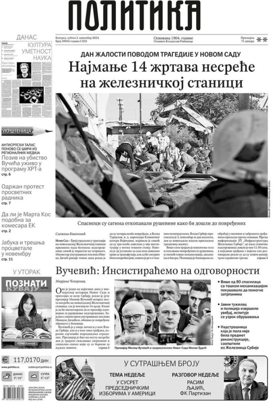 Naslovne strane dnevnih novina: Prelistavanje štampe za 2. novembar 2024. godine