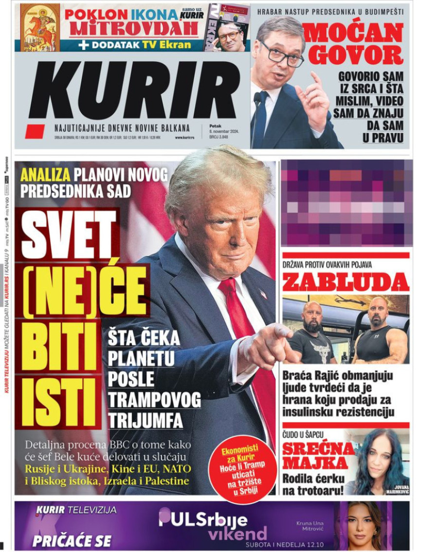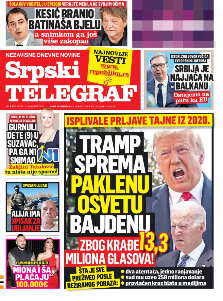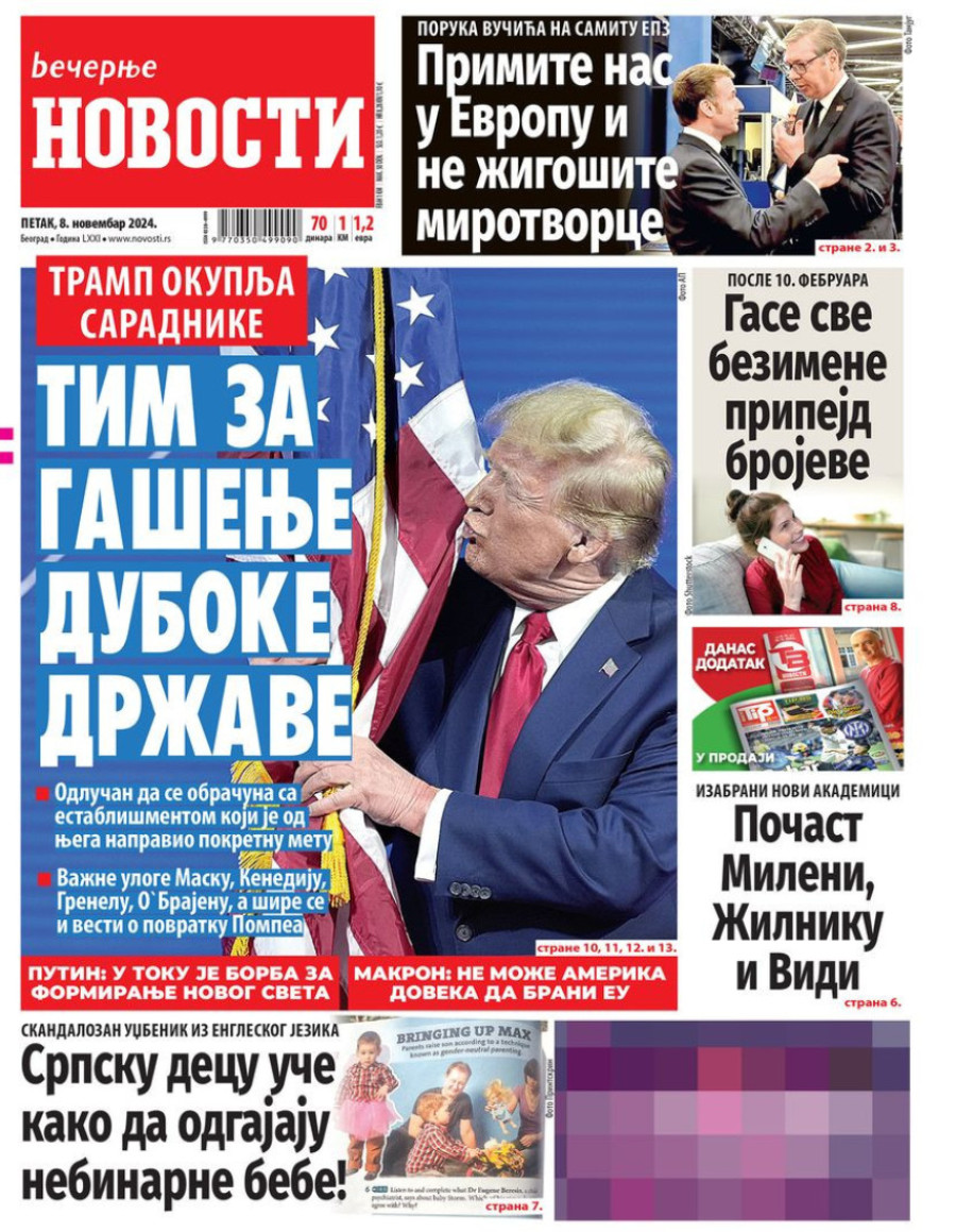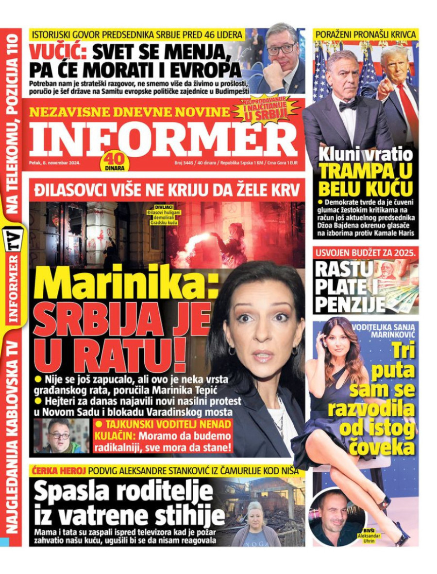 Naslovne strane dnevnih novina: Prelistavanje štampe za 8. novembar 2024. godine