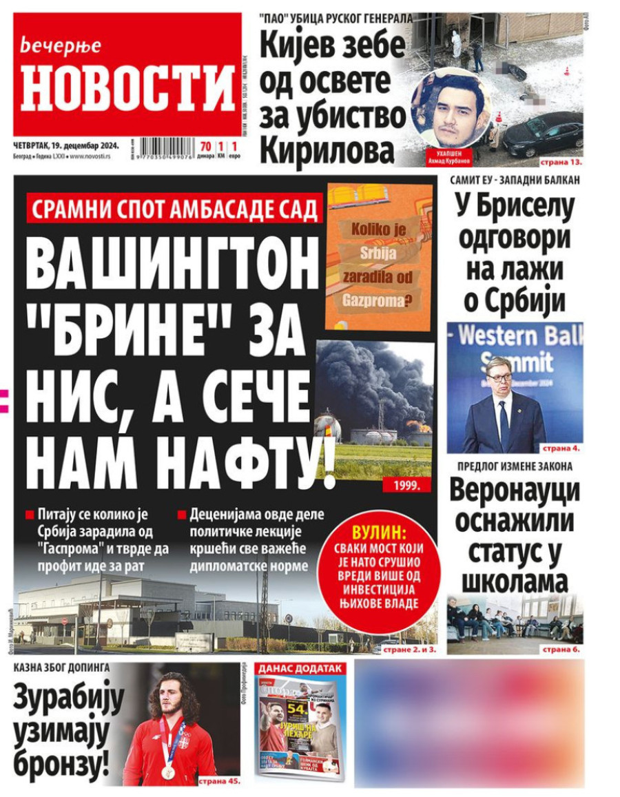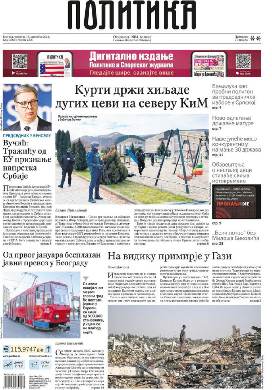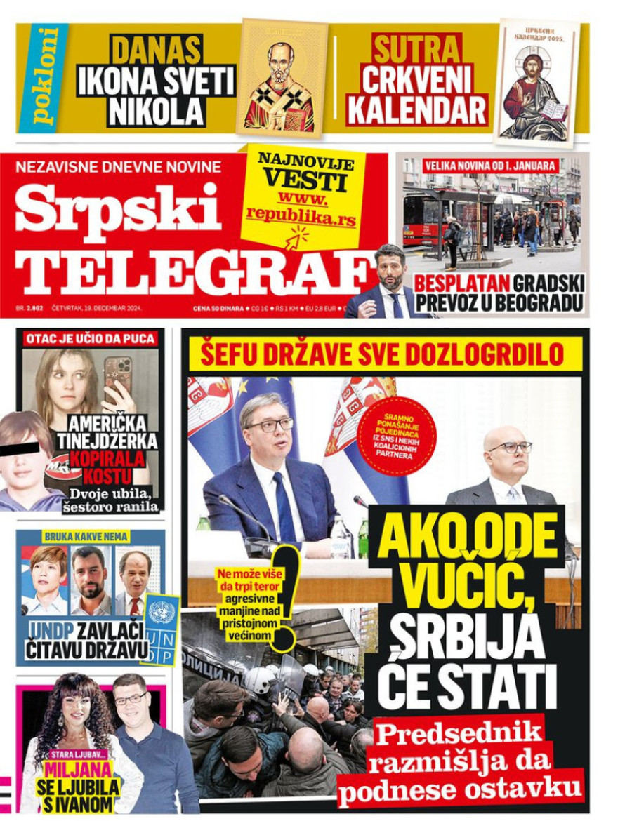 Naslovne strane dnevnih novina: Prelistavanje štampe za 19. decembar 2024. godine