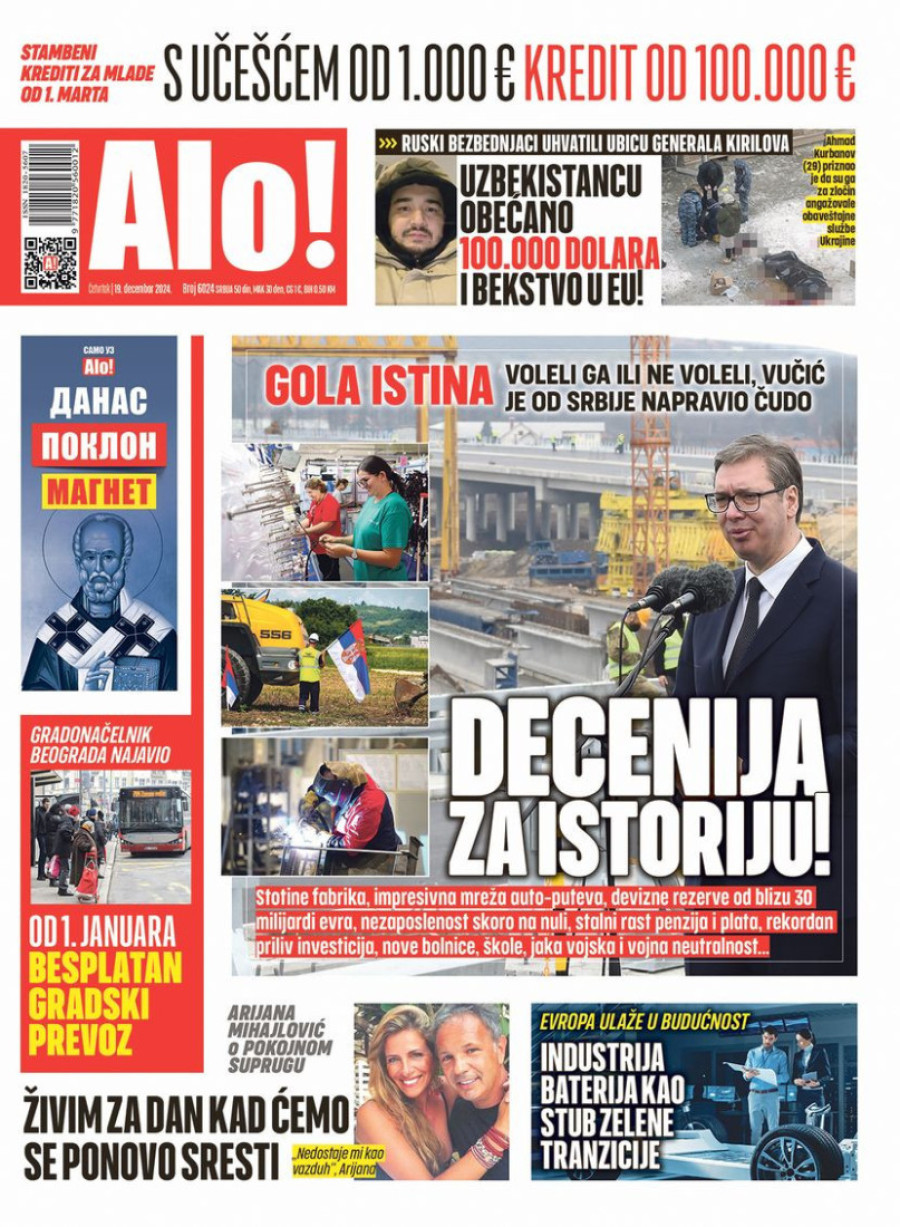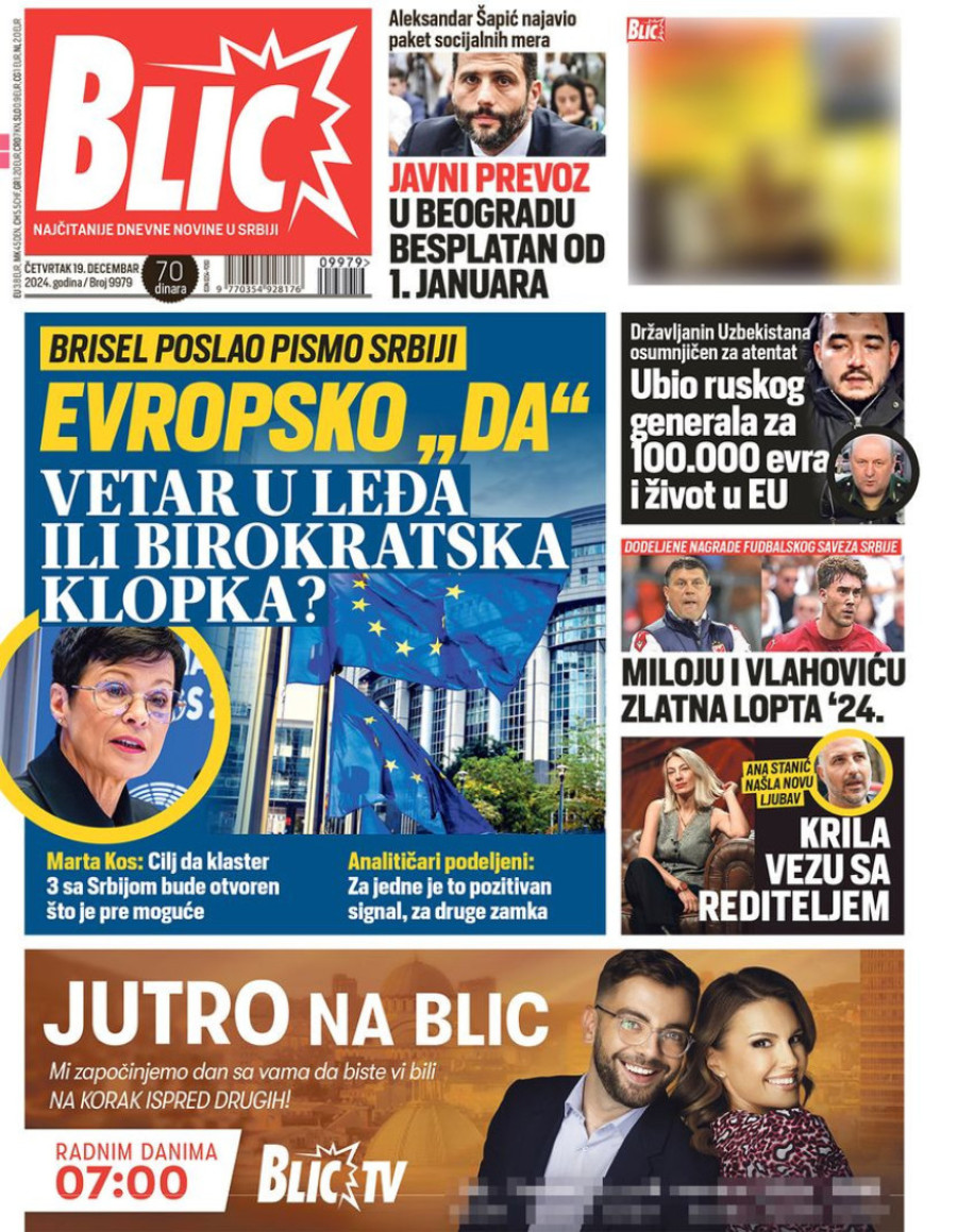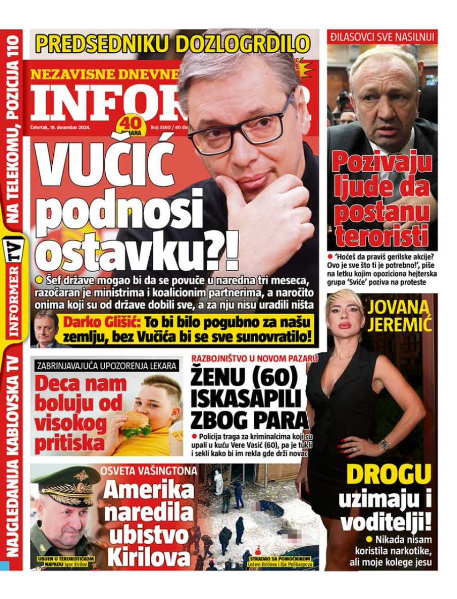 Naslovne strane dnevnih novina: Prelistavanje štampe za 19. decembar 2024. godine