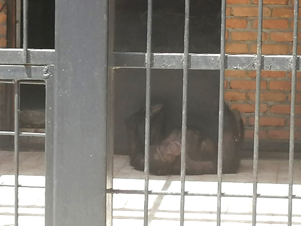Lav i vuk nepomično su ležali u dubini kaveza, dok je jedan od medveda, u “samici” između njih, izvrnut na kamenoj podlozi, sa poluotvorenim ustima delovao kao da se bori za dah.