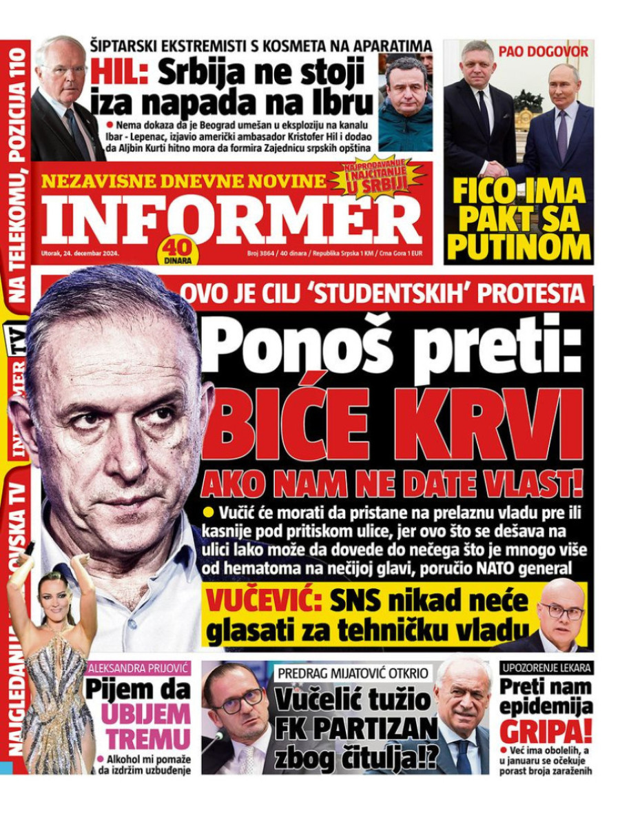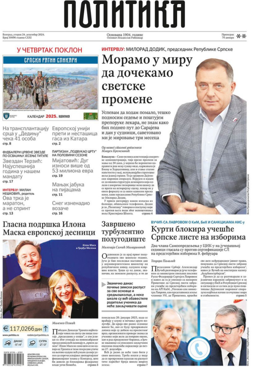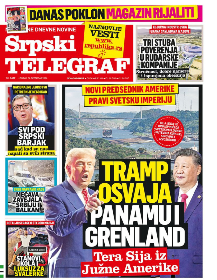 Naslovne strane dnevnih novina: Prelistavanje štampe za 24. decembar 2024. godine