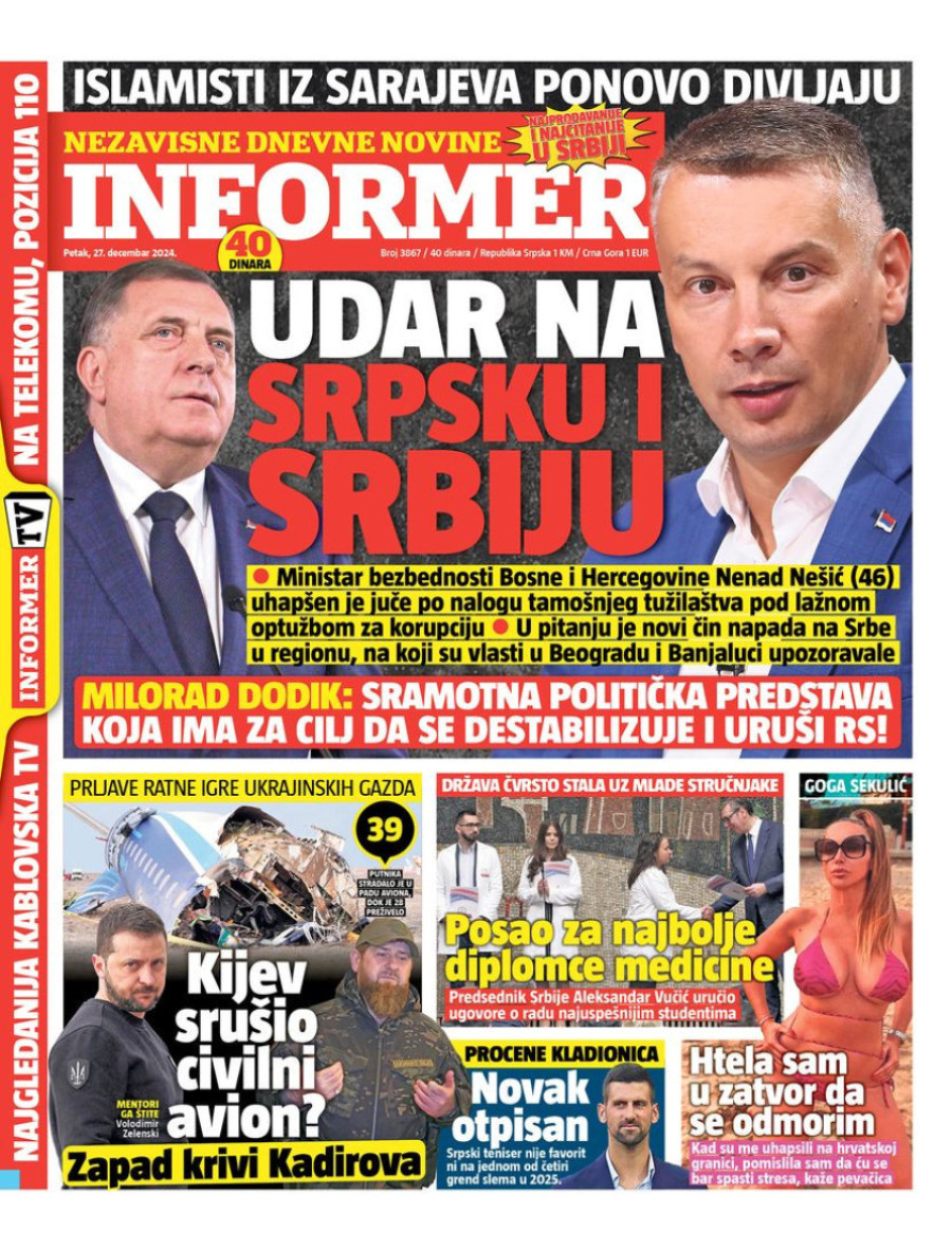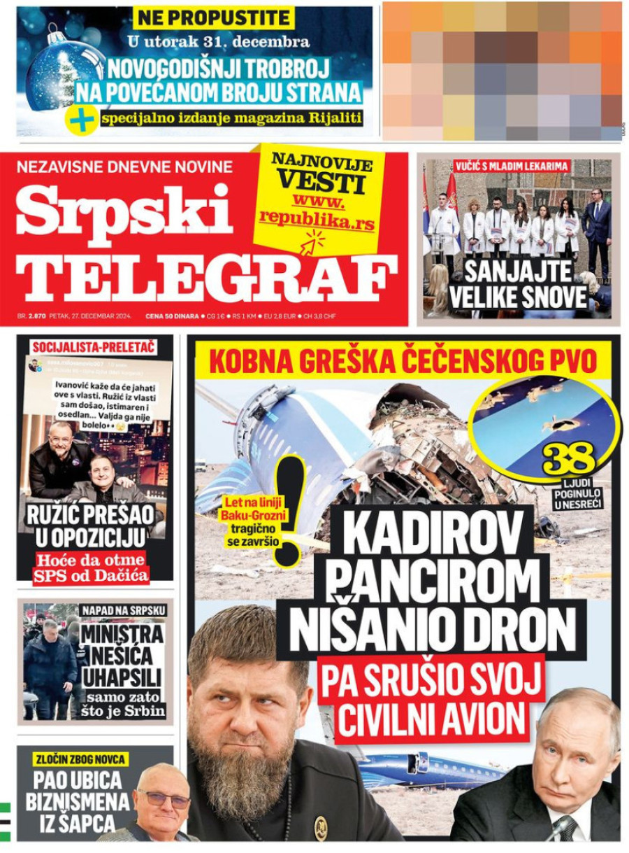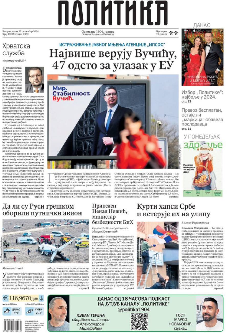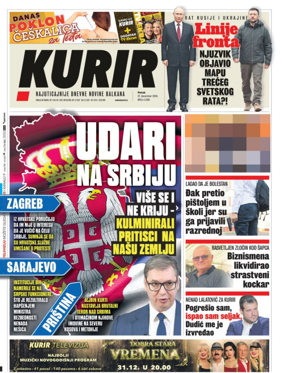 Naslovne strane dnevnih novina: Prelistavanje štampe za 27. decembar 2024. godine
