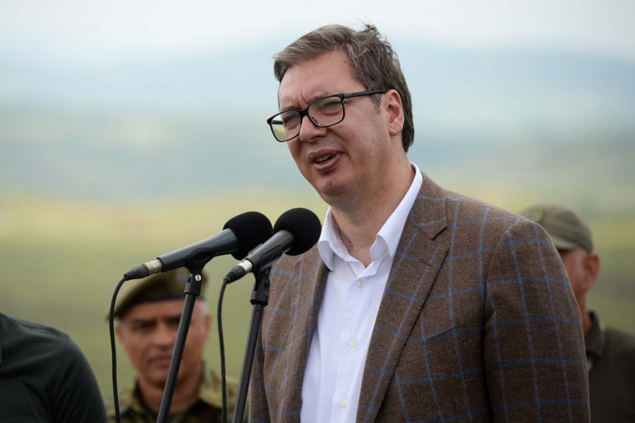 Predsednik Srbije Aleksandar Vučić prisustvuje ovoj taktičkoj vežbi.