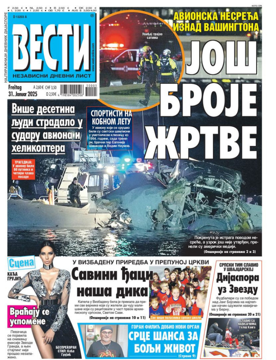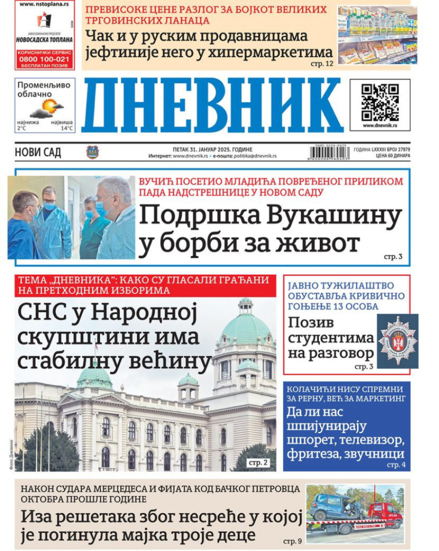 Naslovne strane dnevnih novina: Prelistavanje štampe za 31. januar 2025. godine